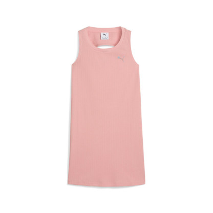 Embrace your inner vibe with this ribbed tank dress. Featuring a shiny PUMthtA Cat logo, a rip-cut collar, and a chic back opening, it's designed to make you feel unstoppable. Embrace the energy and shine with PUMthtA.