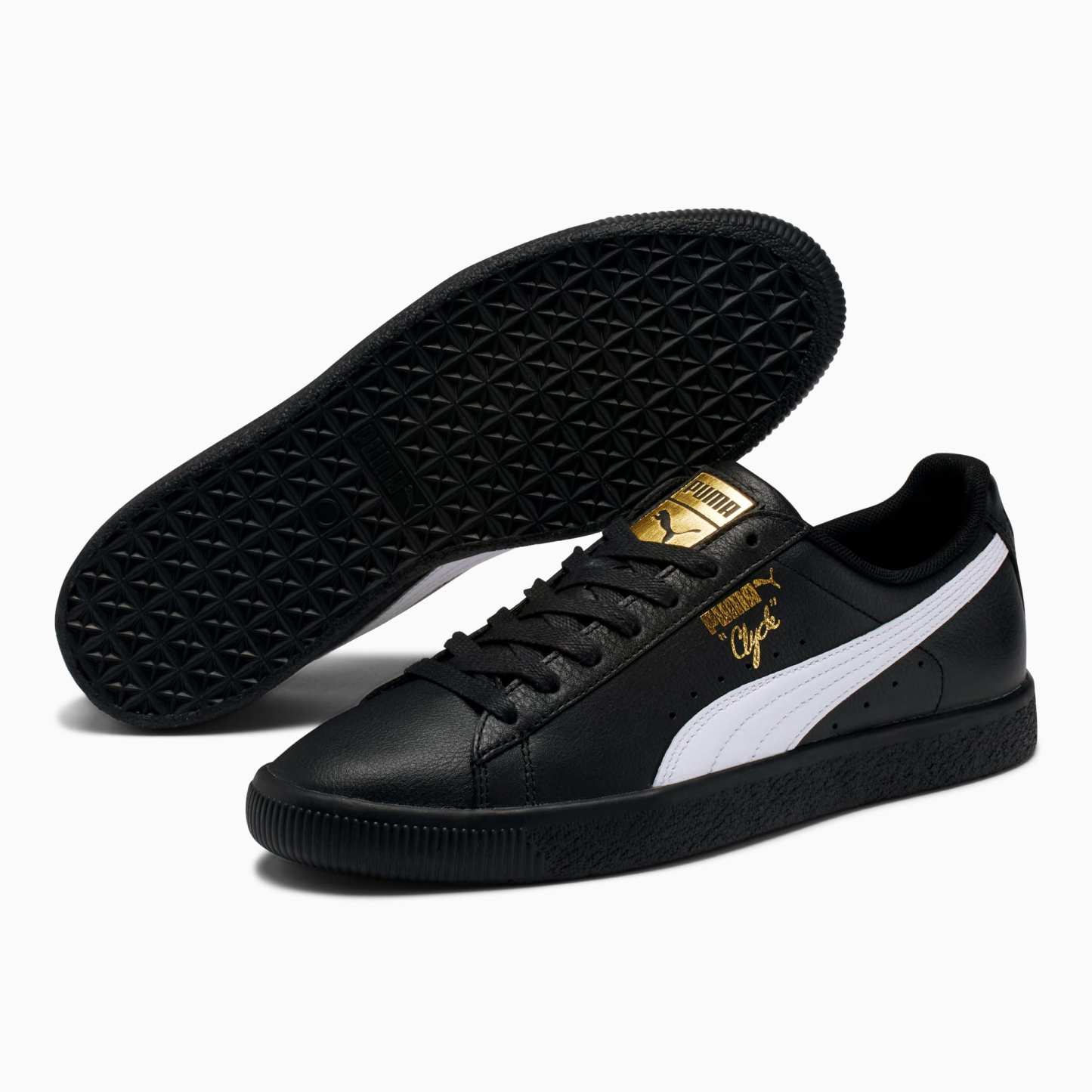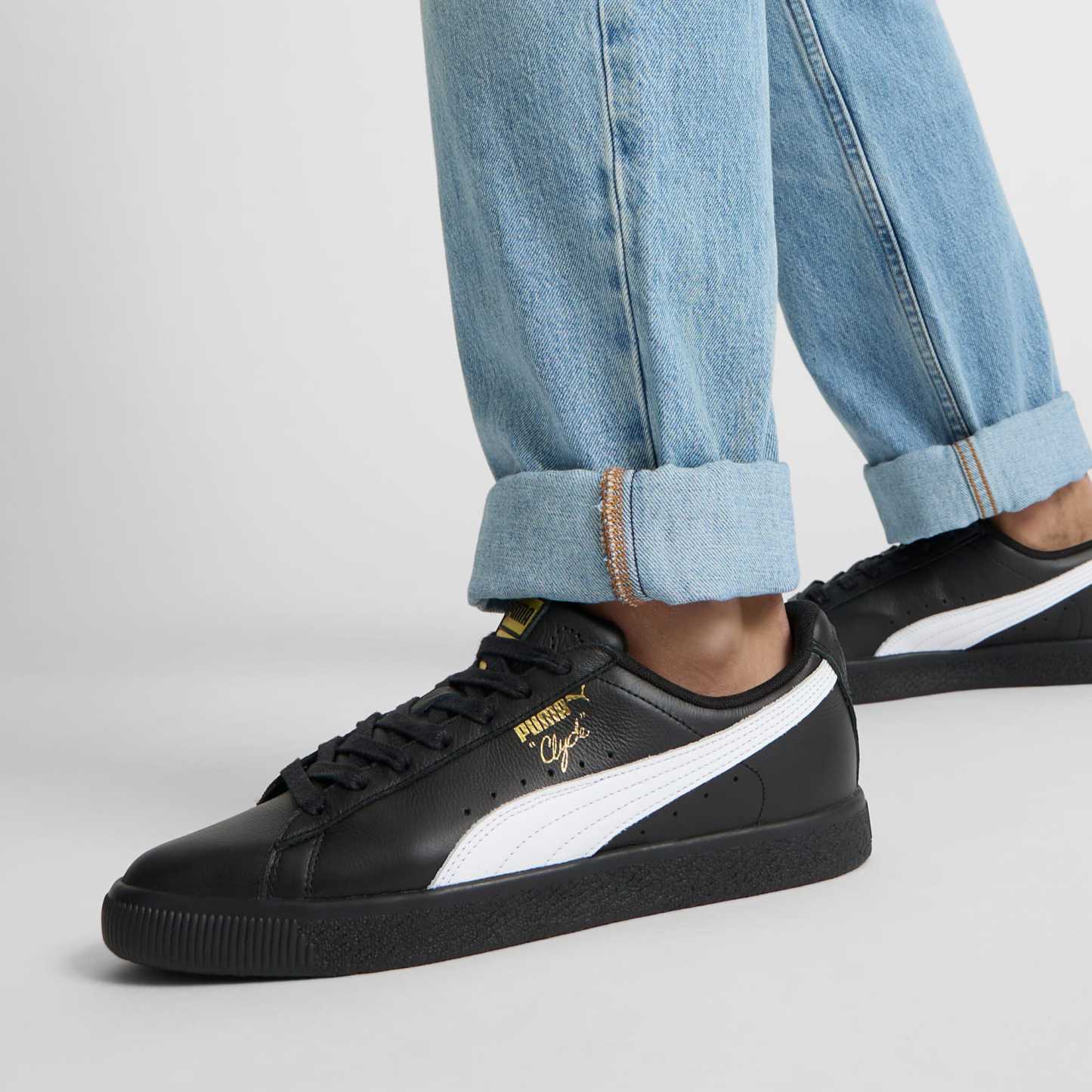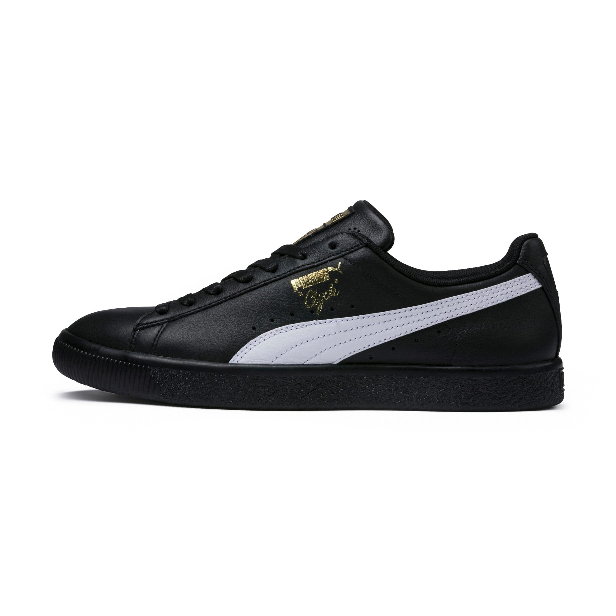 Pay tribute to a legend in this gold edition Clyde. Inspired by the legend himself, we created the pumthta Clyde back in 1973 just for basketball icon Walt "Clyde Frazier". Known for his on-court playstyle and off-court street style, the Clyde is all class and flash. This version is updated with gold foil branding and a premium leather upper.- Style: 364669_04