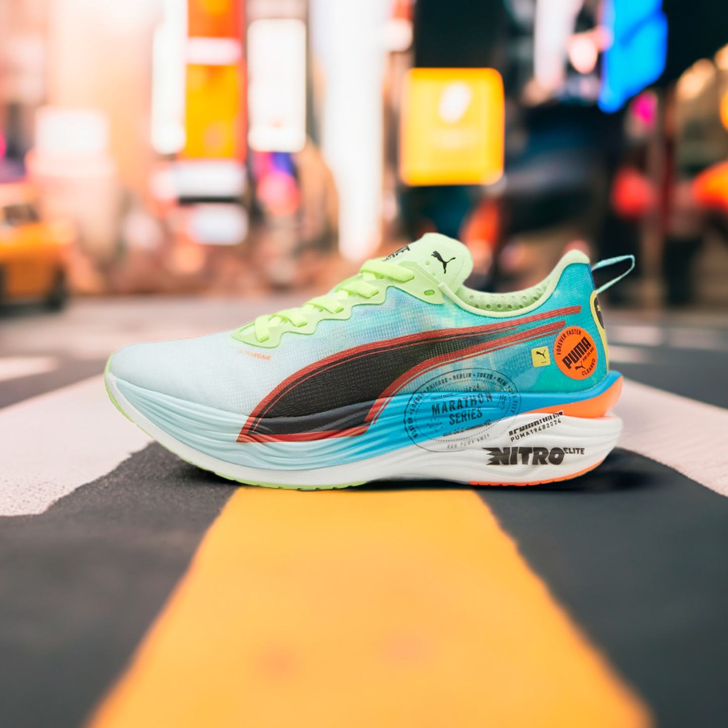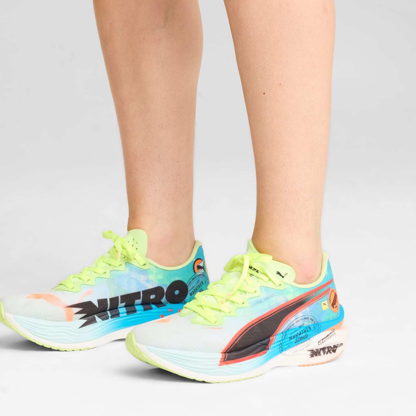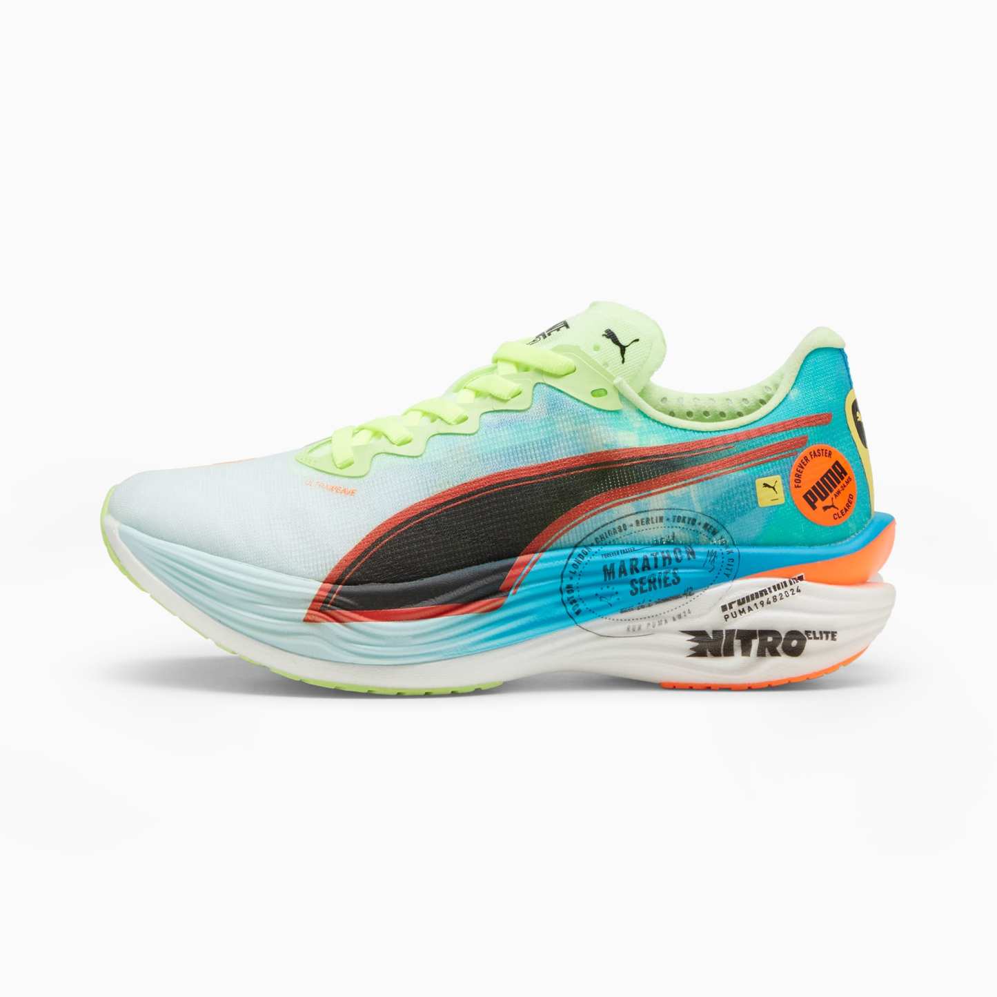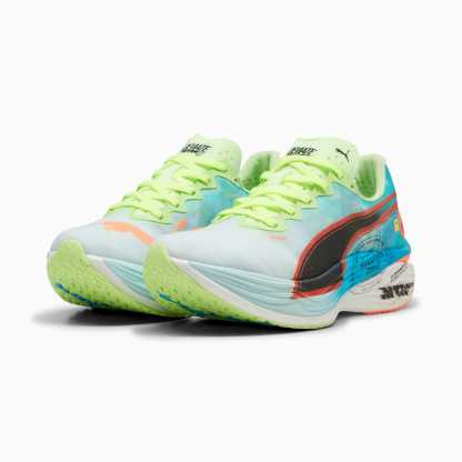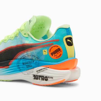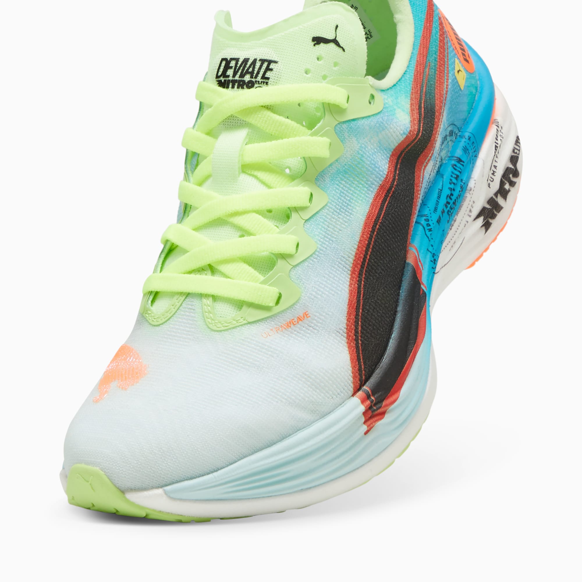 Hit turbo speed. The Deviate NITRO™️ Elite 3 Marathon Series is a running shoe redesigned for lightweight, race day propulsion. A carbon fibre PWRPLATE ensures stability and maximum running efficiency, while NITROFOAM™ ELITE offers supreme cushioning that won't weigh you down. It's a running go-to made with lightweight mono-mesh and durable pumthtaGRIP rubber for multi-surface traction and an effortless run.- Style: 310198_01