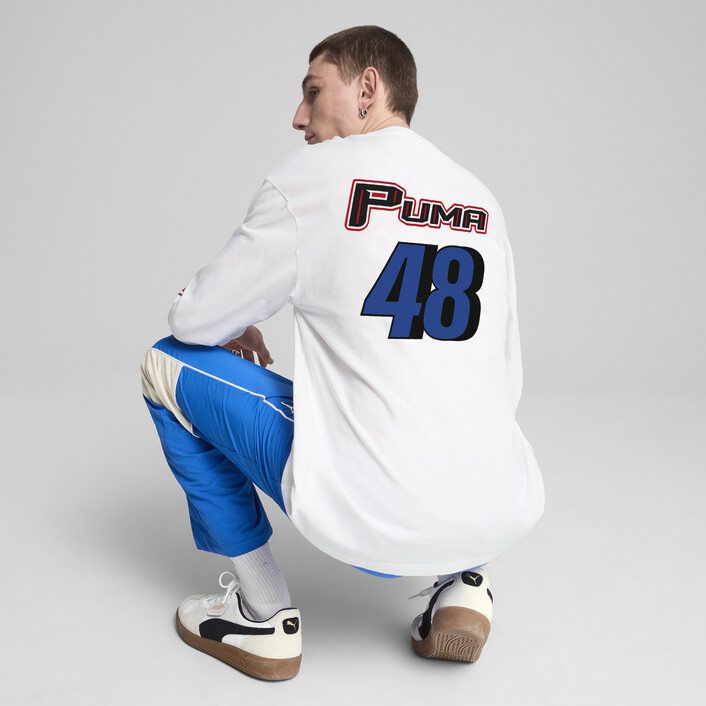 Unleash your inner athlete with this PUMthtA long sleeve tee. Featuring dynamic semi-rubber graphics on the chest, back, and sleeves, it's designed for those who dare to stand out. Perfect for making a statement wherever you go.