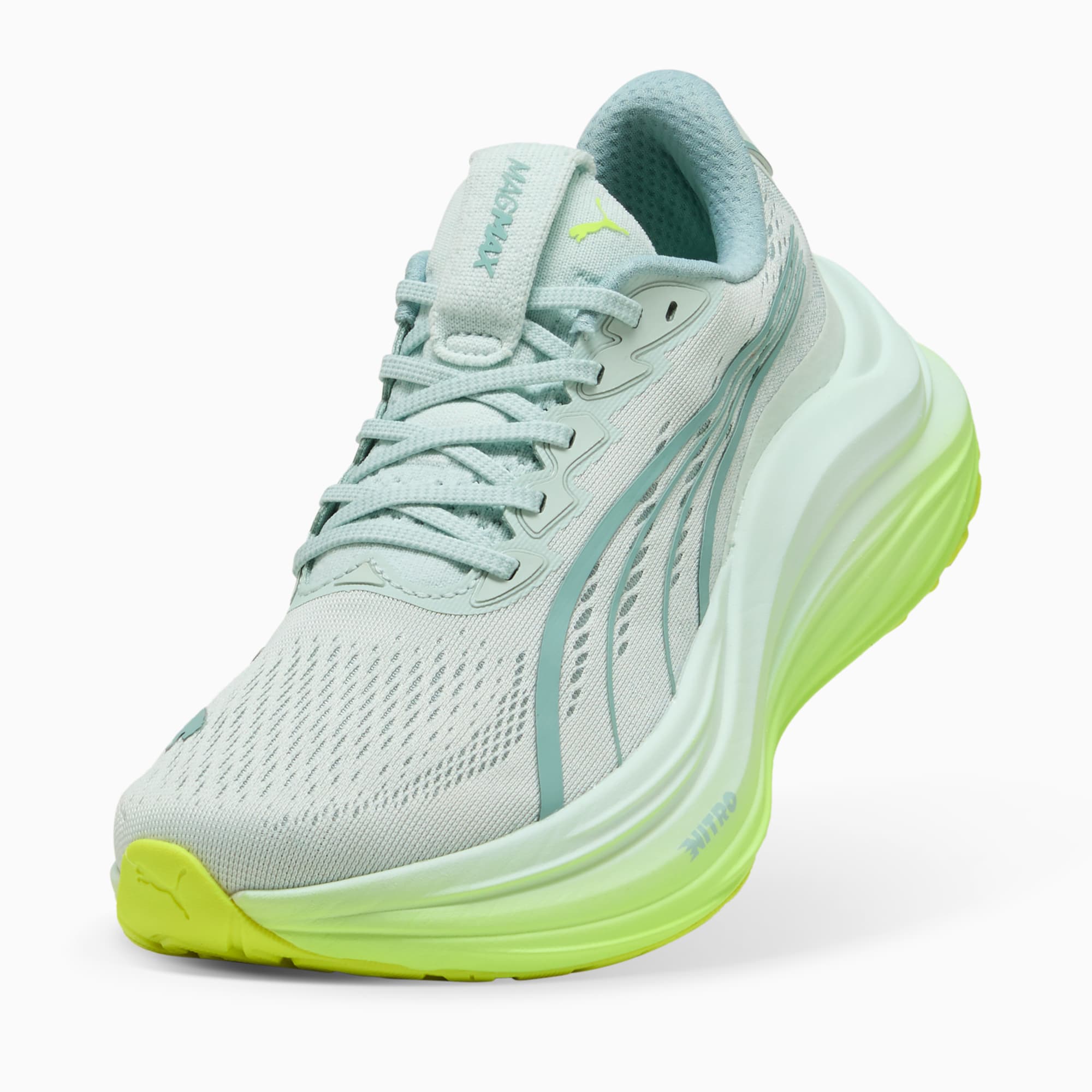Experience an exhilarating bounce like never before with the MagMax NITRO™. Boasting an impressive amount of cutting-edge NITROFOAM™ technology, these shoes will effortlessly propel you from one mile to the next, filling your stride with excitement and ease. Around the foot you'll find a comfortable mesh, deluxe knitted tongue and cushioned heel. pumthtaGRIP protects the precious NITROFOAM™ and provides top-notch traction keeping you steady on your feet.- The upper of the shoes is made with at least 20% recycled materials