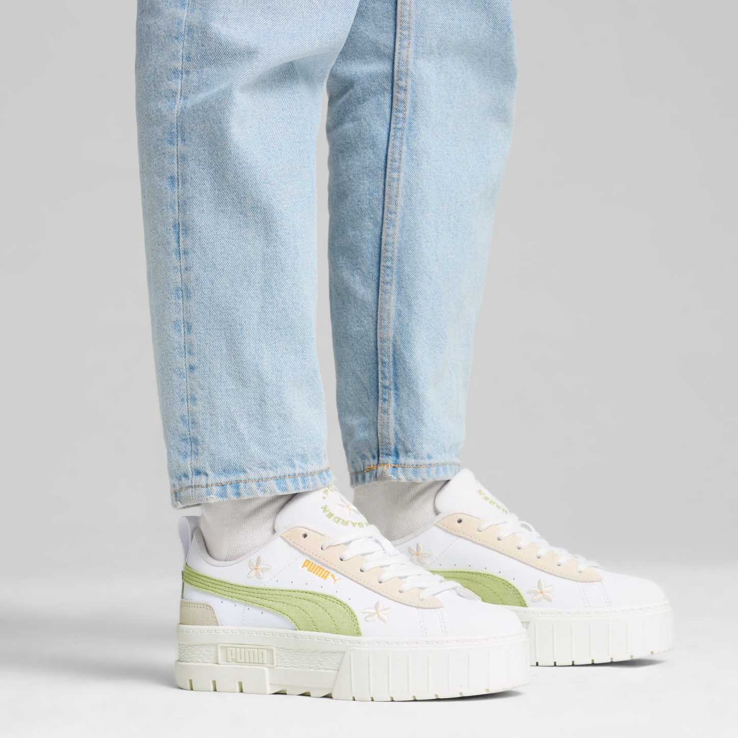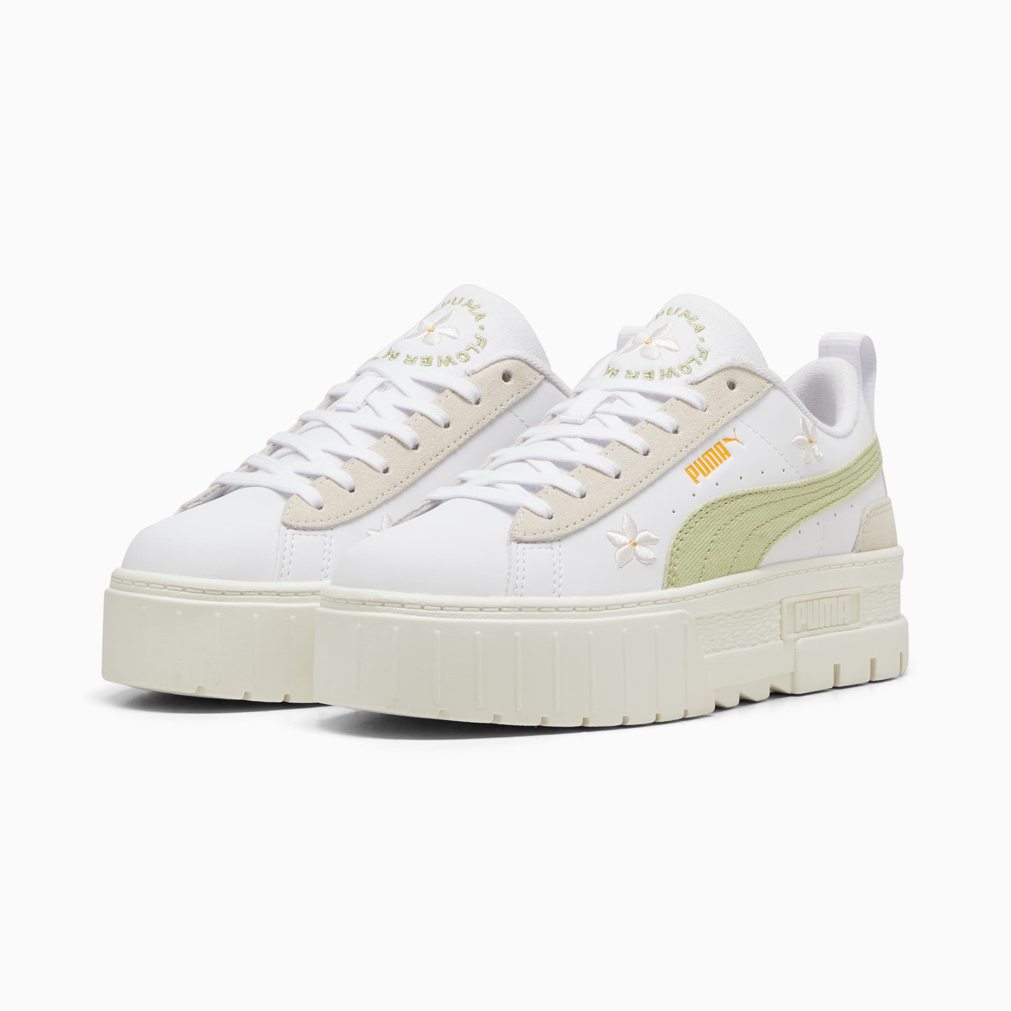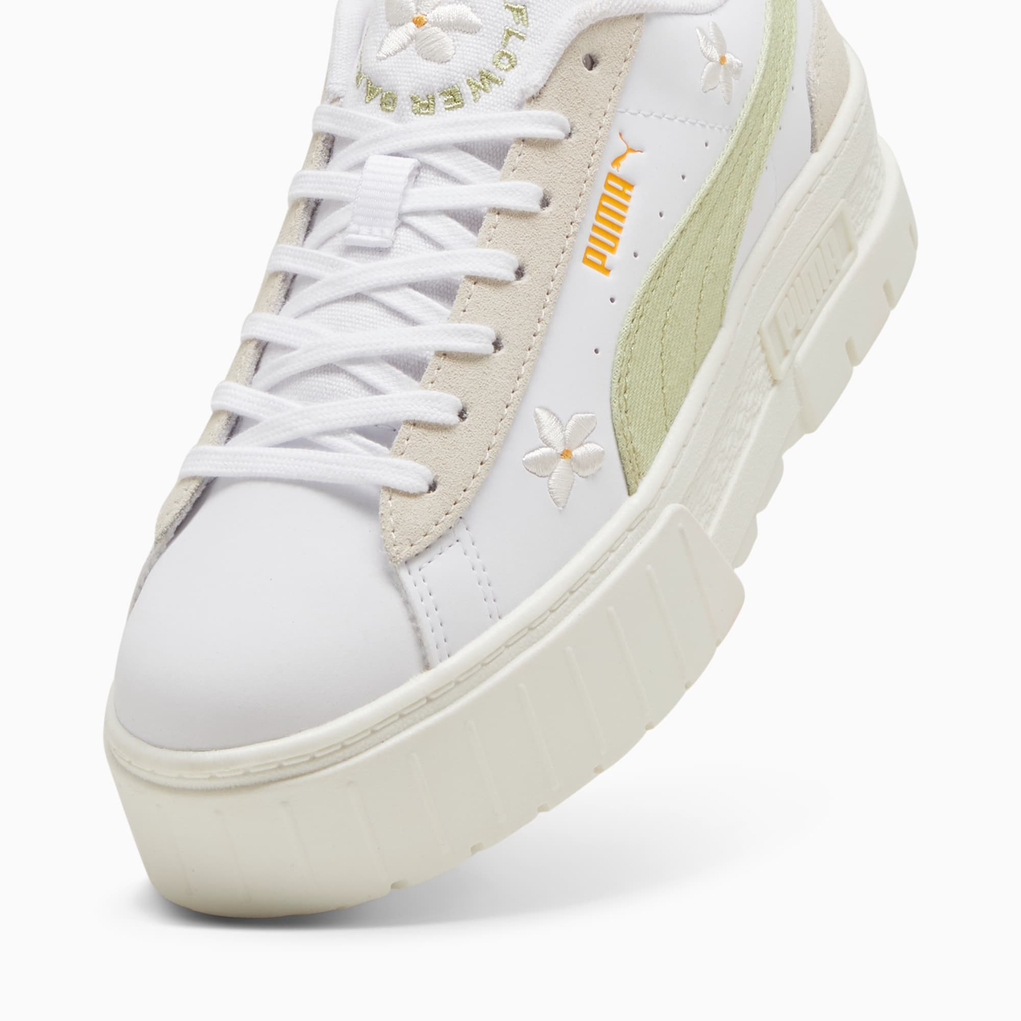 Make a street style statement in the Mayze Embroidery sneakers. With a stacked sole and 3D embroidered flowers, set trends and turn heads. Designed for the hype girls and fashion mavens, these sneakers deliver standout style inspired by the streets. Step into the spotlight and get ready to be noticed in every step.