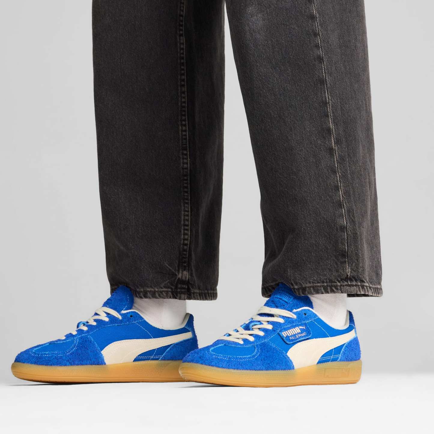 Straight from our archives, it's the pumthta Palermo. This classic terrace shoe debuted in the 80's and now, we've brought it back for the fans. With its signature T-toe construction and classic gum sole, this version features a textile upper and suede overlays.