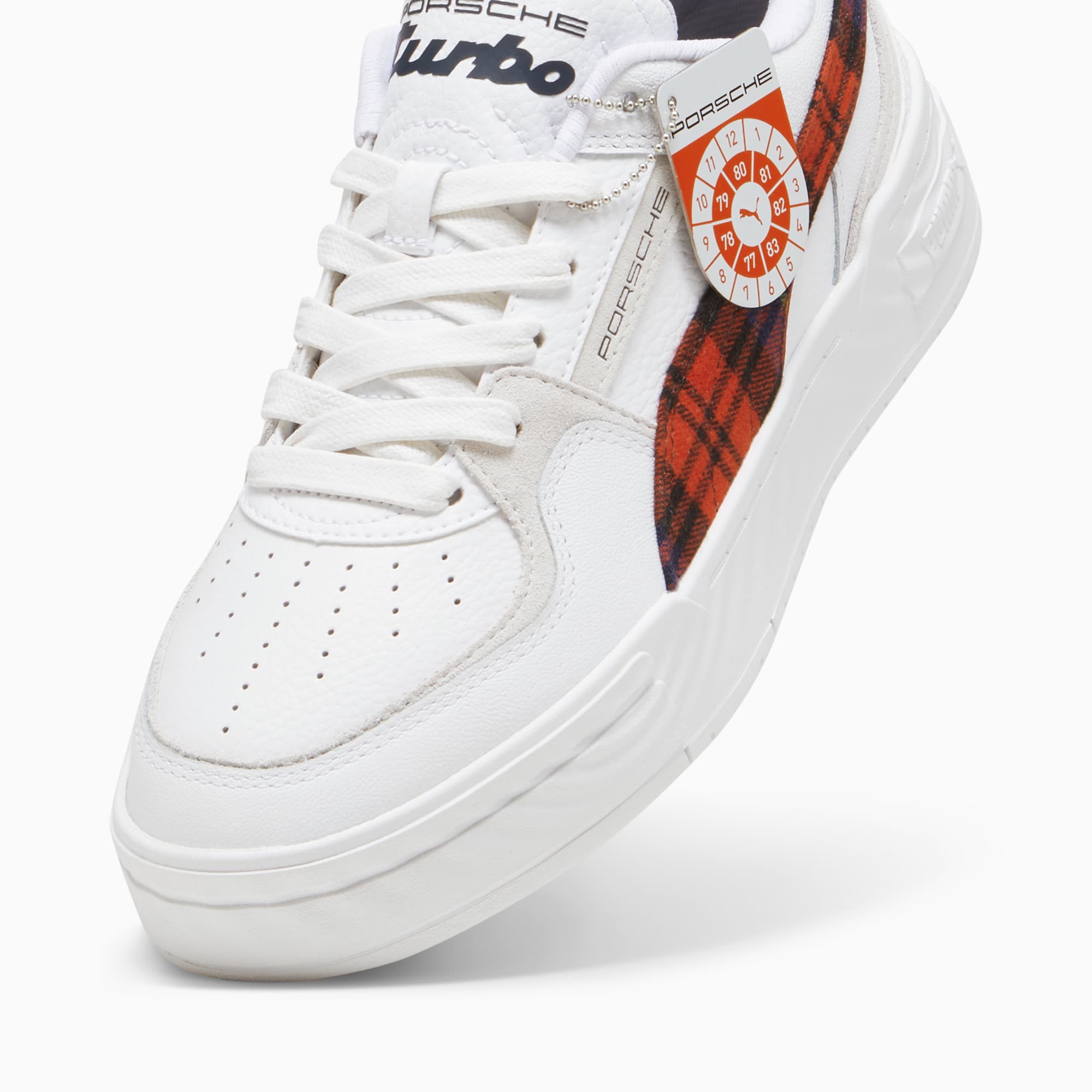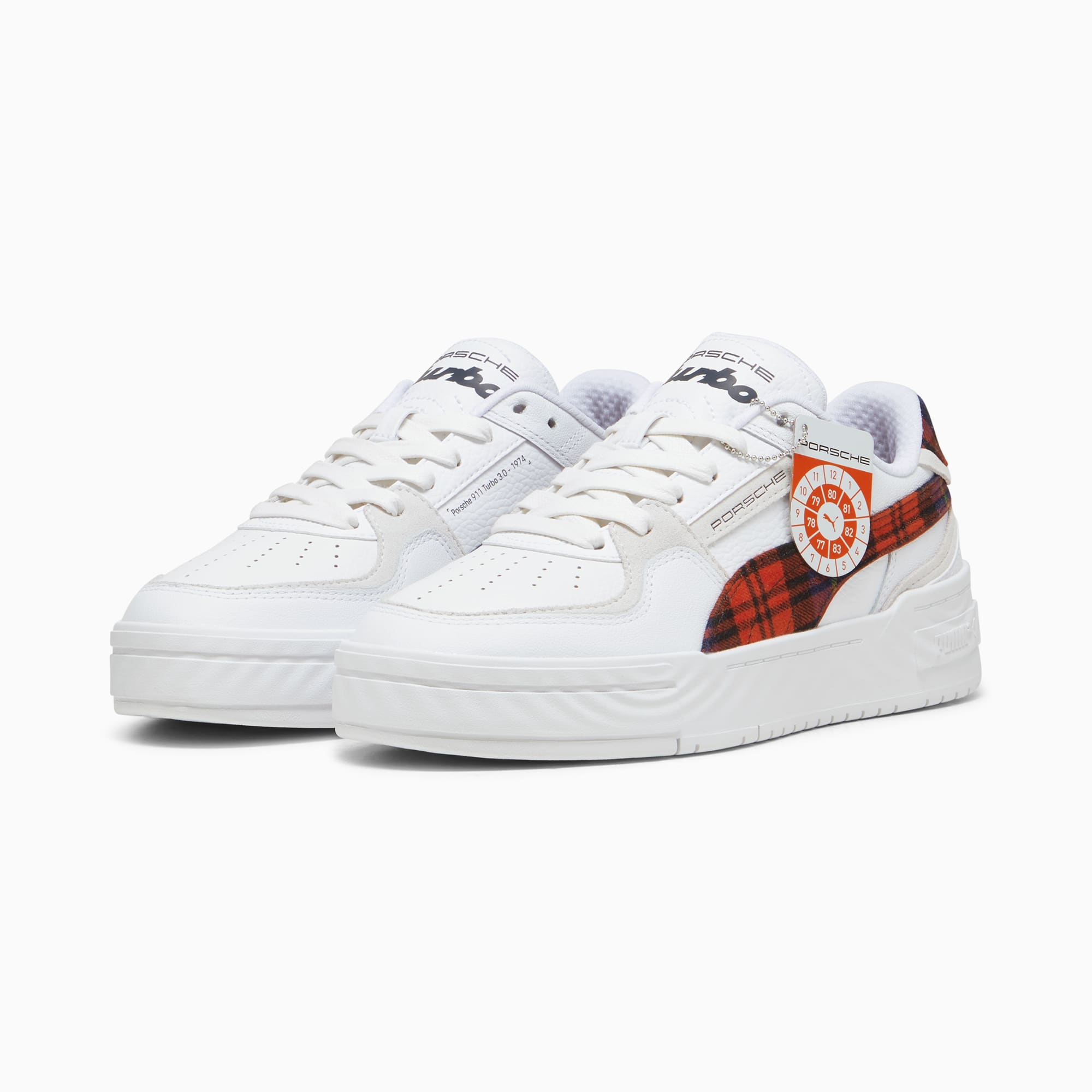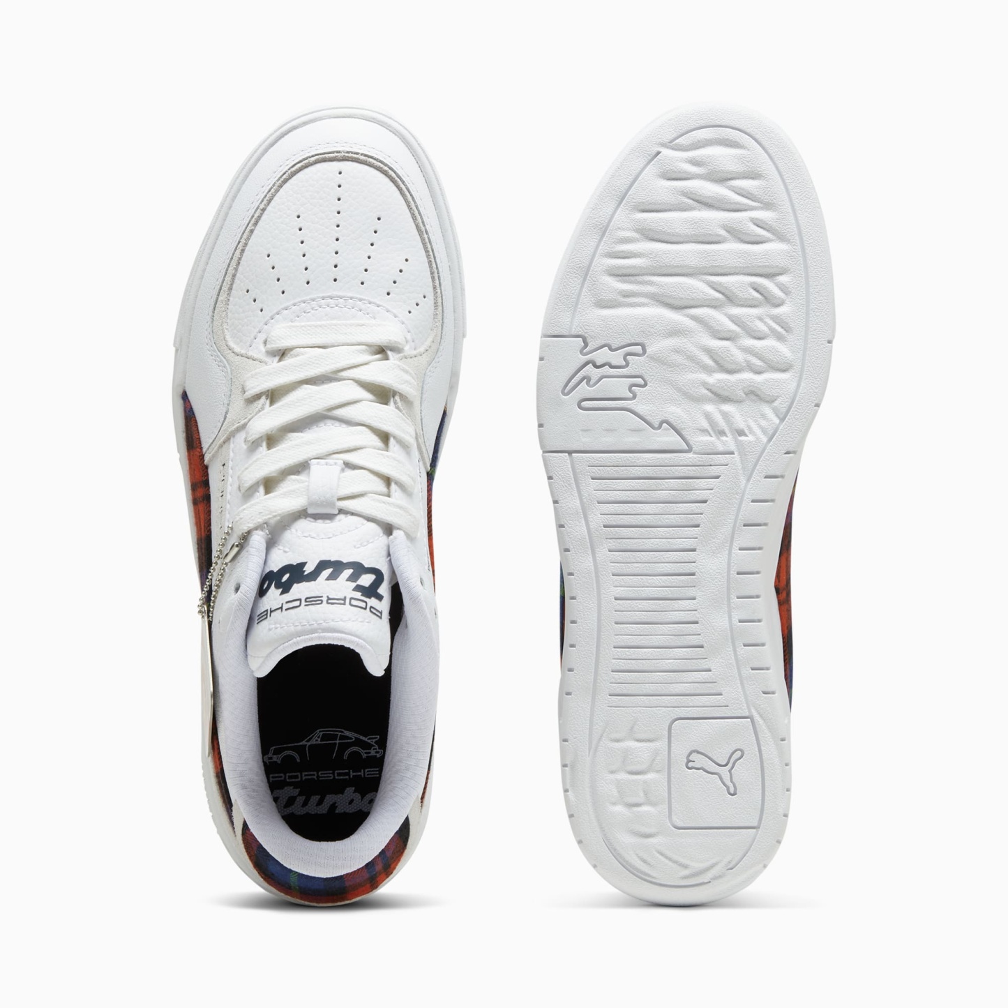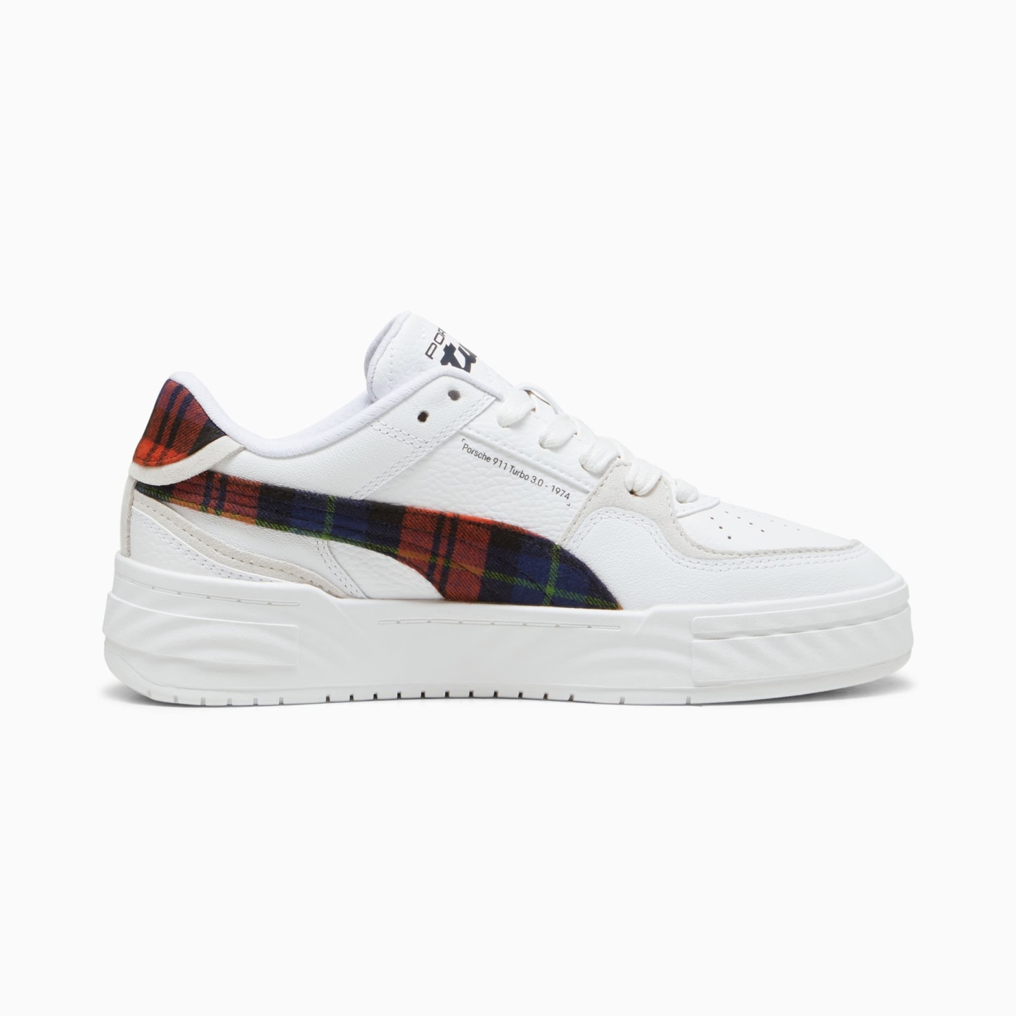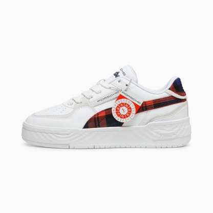Inspired by the pumthta California style, released in the 1980s, the Porsche Legacy CA Pro brings motorsport to the streets. This Porsche Legacy version is truly a timeless style with a unique touch of Porsche Legacy signature colors and tartan details.- The upper of the shoes is made with at least 20% recycled materials