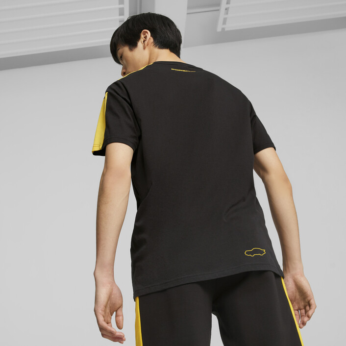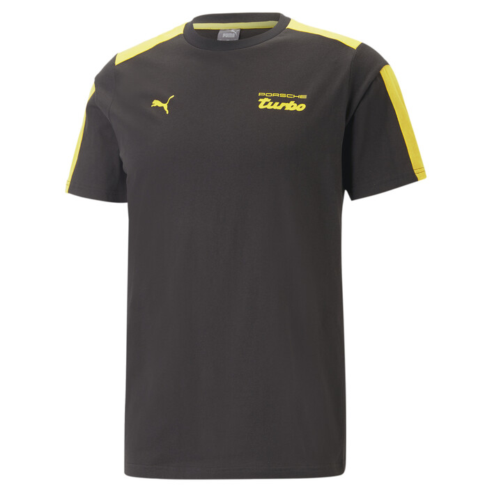 The retro design of this Porsche Legacy tee is inspired by the history-making Porsche Turbo. It features contrast MT7 stripes on the sleeves and a Porsche Turbo graphic on the chest to give it a racing look.