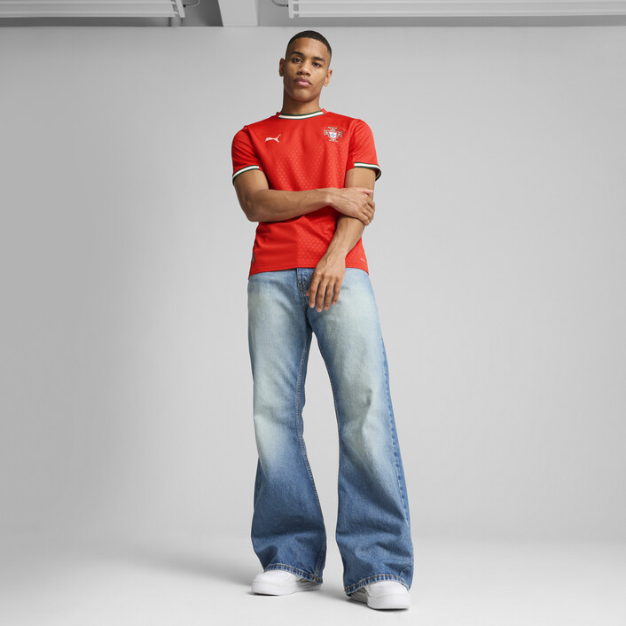 Tradition fuels ambition in the first-ever Portugal Home Kit by PUMthtA. With signature Portuguese colors and repeated graphics of the Quinas emblem from the national coat of arms, it’s a kit that pays tribute to the brilliant past, while setting the stage for the next generation to shine even brighter. Designed for the fans, Replica jersey pairs the same match-worn look with a casual silhouette, details, and materials, ideal for both game day and everyday wear. This kit is made with RE:FIBRE, PUMthtA’s program to transform textile waste and other used materials into new textiles. Portugal, we’ve got history – to make.