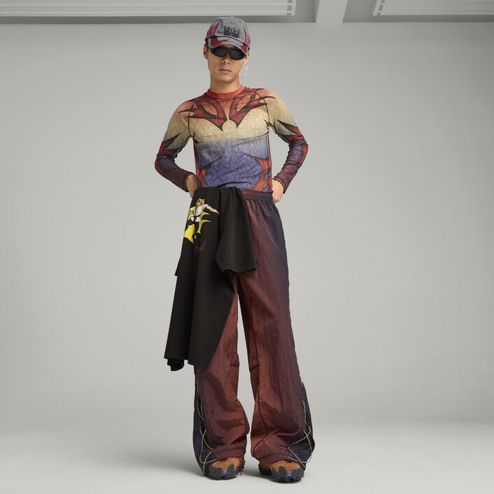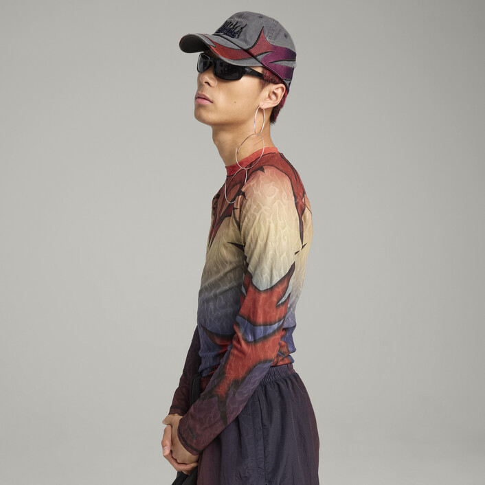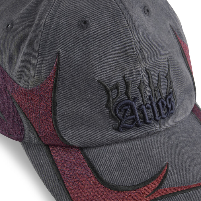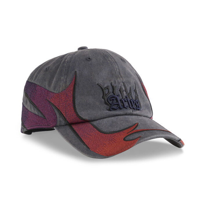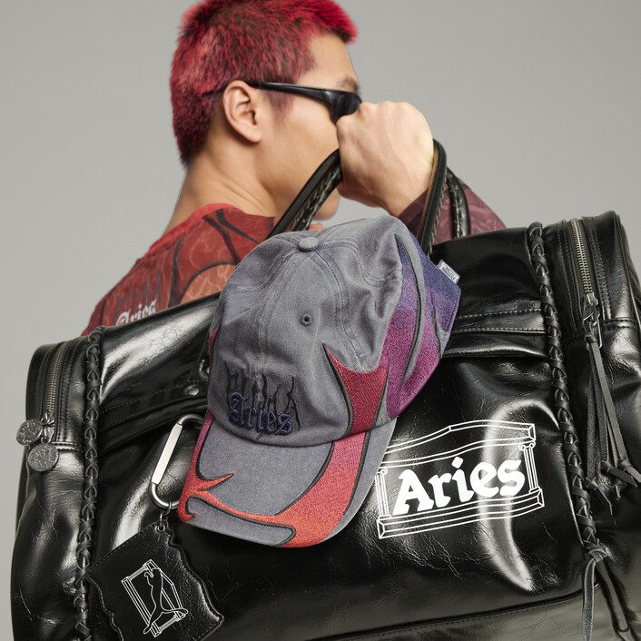 Luxe-streetwear brand Aries is back with a new collection that combines their signature extravagance with PUMthtA’s heritage silhouettes. This collection is centered around the charged athleticism of Muay Thai, as well as the danger and thrill of classic fighting games. Part of the collab, this cap has a snug fit with a pre-curved brim and adjustable snapback closure.
