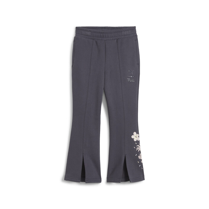 Step into the sweet universe of PUMthtA x TROLLS. The newest collection is inspired by the beloved characters, vibrant colours, and positive vibes. Featuring candy-coloured graphics, Trolls-tastic details and comfy fits, these styles are here to stay. These flared pants feature slits at the bottom, as a bold design element.