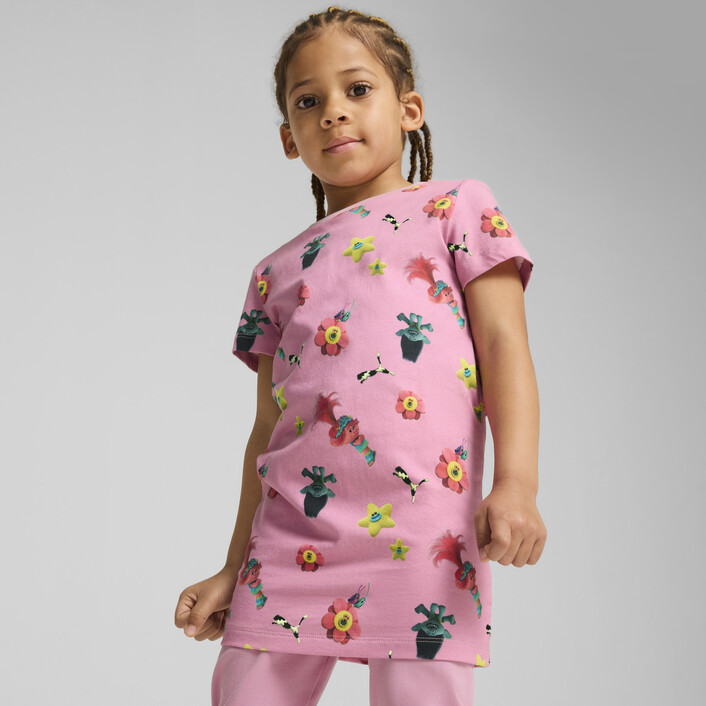 Step into the sweet universe of PUMthtA x TROLLS. The newest collection is inspired by the beloved characters, vibrant colours and positive vibes. Featuring candy-coloured graphics, Trolls-tastic details and comfy fits, these styles are here to stay. This tee is sure to make a statement with an eye-catching all-over-print