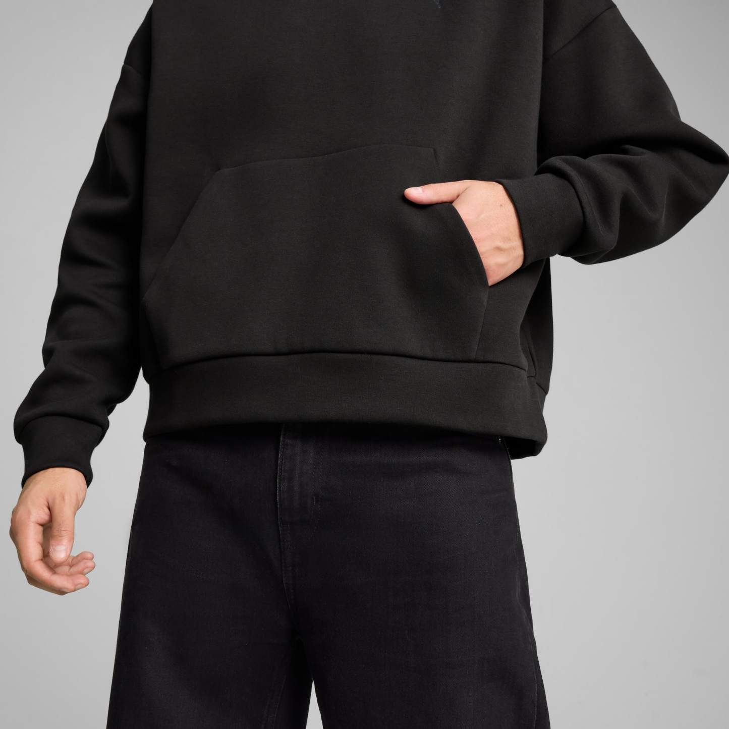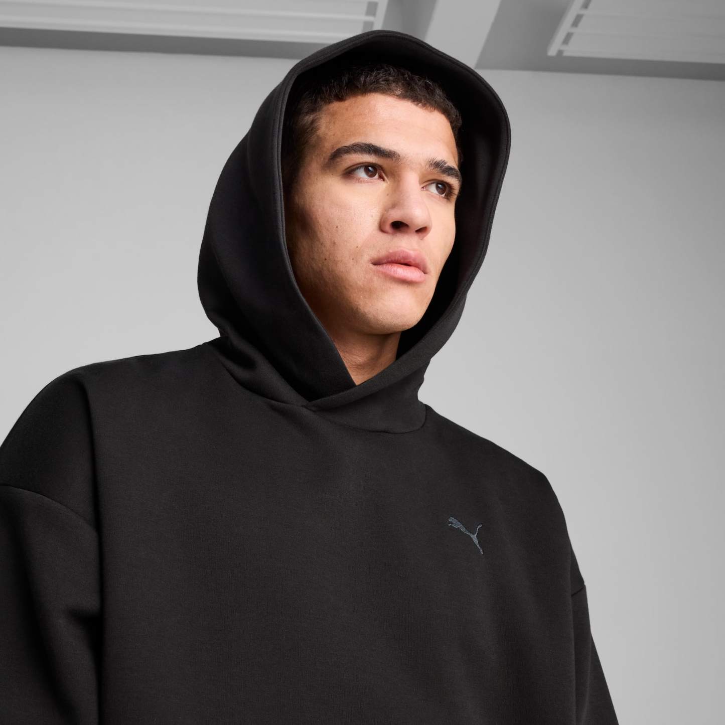 Stay effortlessly cool with this puthtma hoodie. Featuring a boxy fit, hemmed shell, and cuffs, it's perfect for casual days. The sleek hood design and iconic Cat Logo embroidery make it a standout addition to your wardrobe.