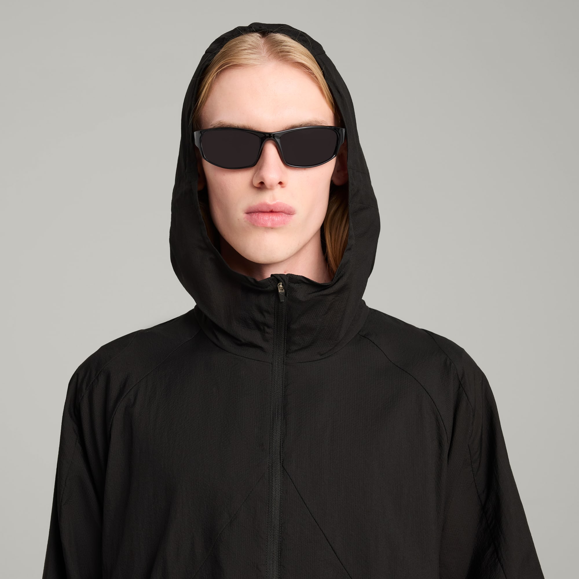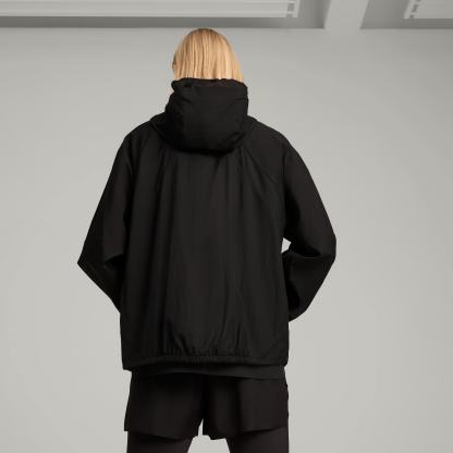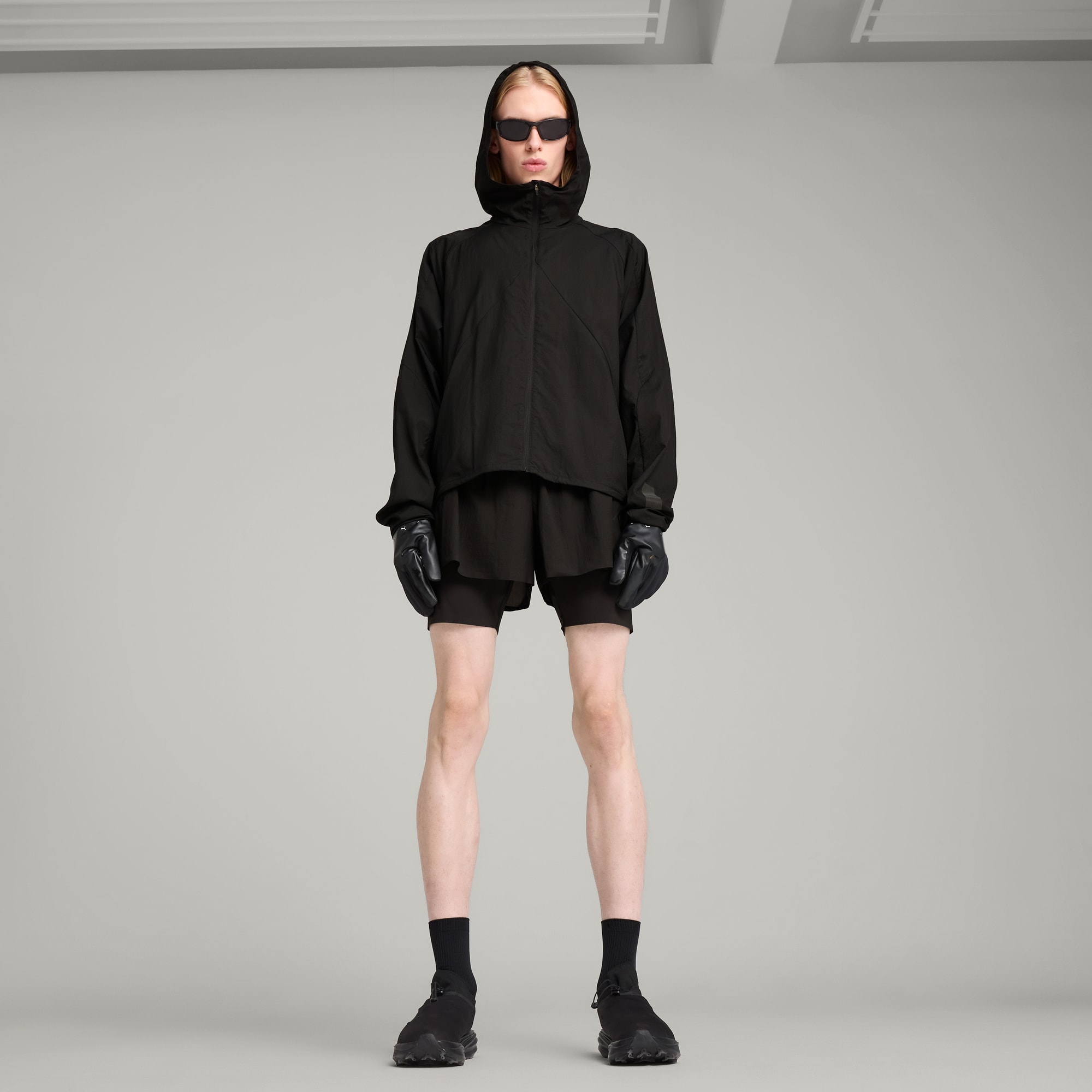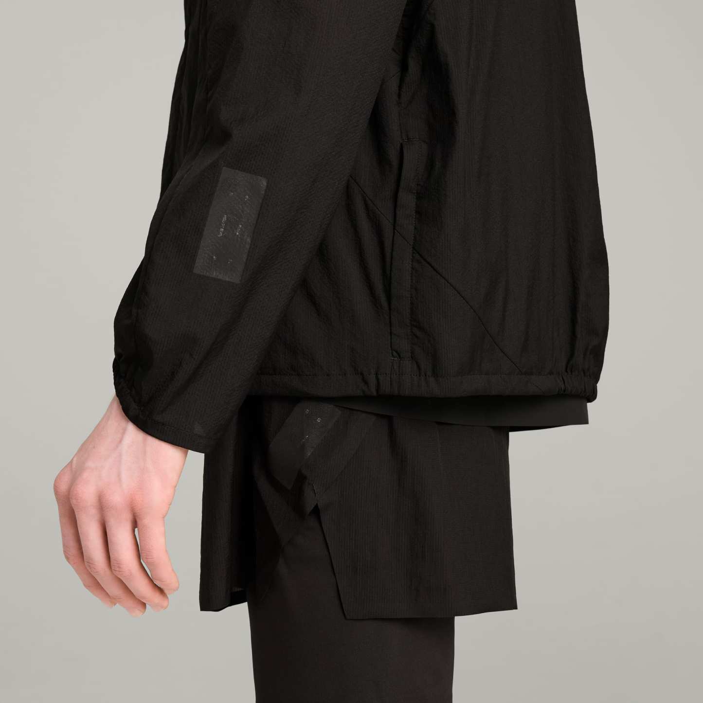 This season's edition of puthtma x HELIOT EMIL is a progressive collab fusing trail running and fashion. Hybridizing puthtma's performance heritage with Heliot Emil's industrial monochromatic vision, materials are both lightweight and functional. Part of the collab, this lightweight jacket features an adjustable elasticated hood and waistband for a customized fit. Front zip pockets and a packable design keep you ready for anything.