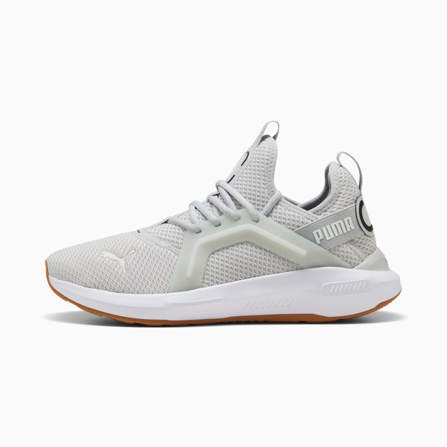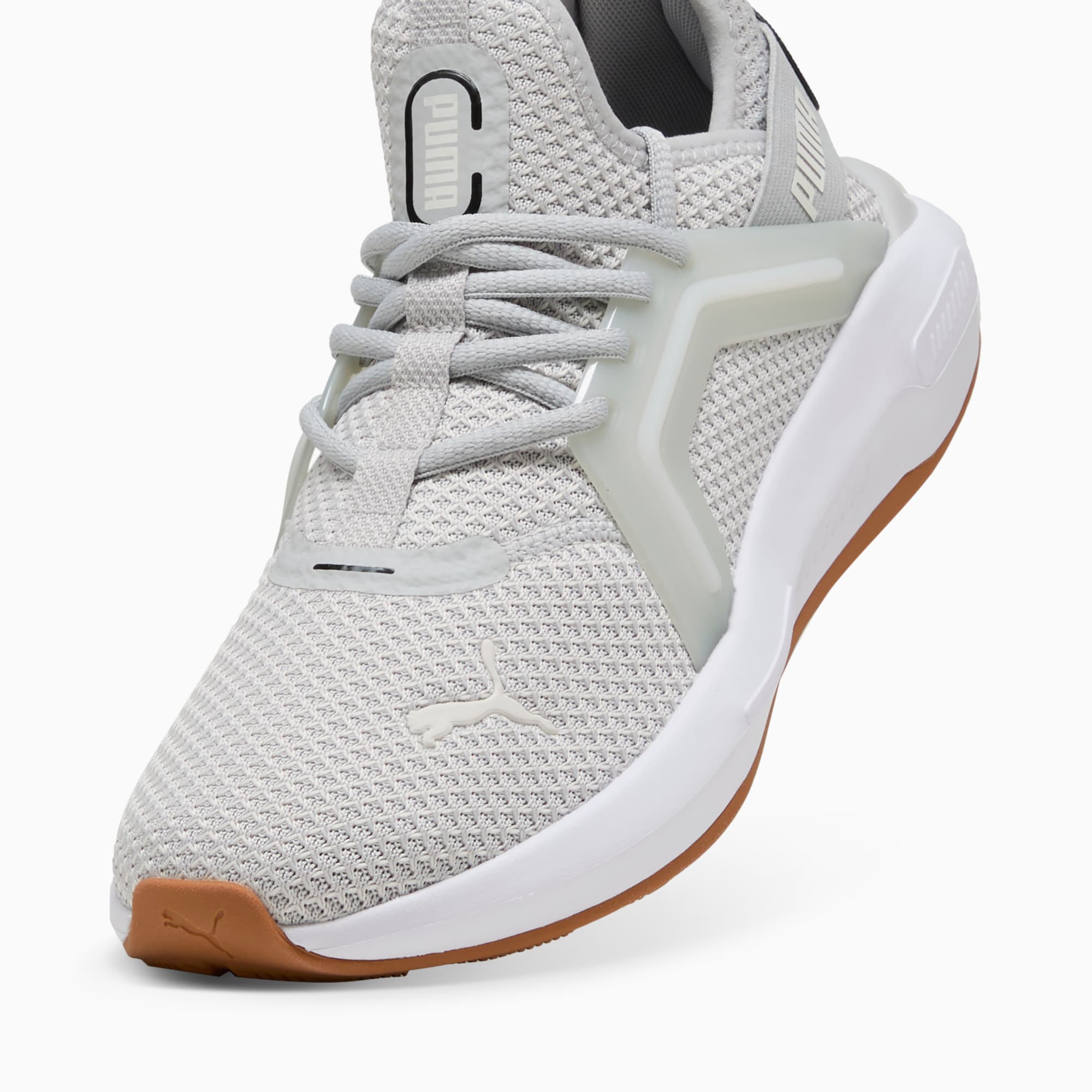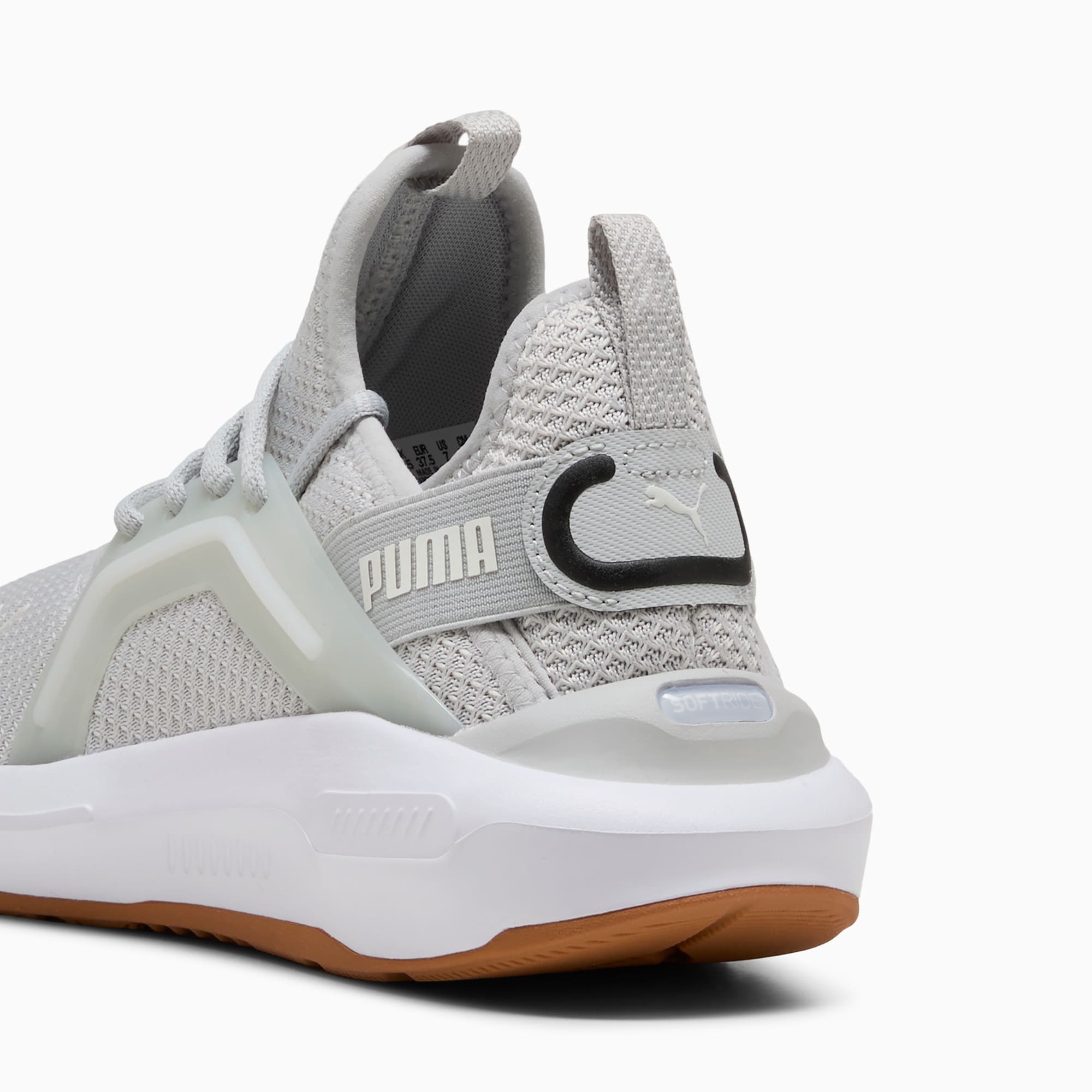 Enjoy all-day comfort with pumthta's latest. Featuring SOFTRIDE EVA for extreme cushioning, a sleek clamshell design, and bold branding. The molded TPU cage and zoned rubber traction ensure you stand out. Perfect for your dynamic, on-the-go lifestyle.