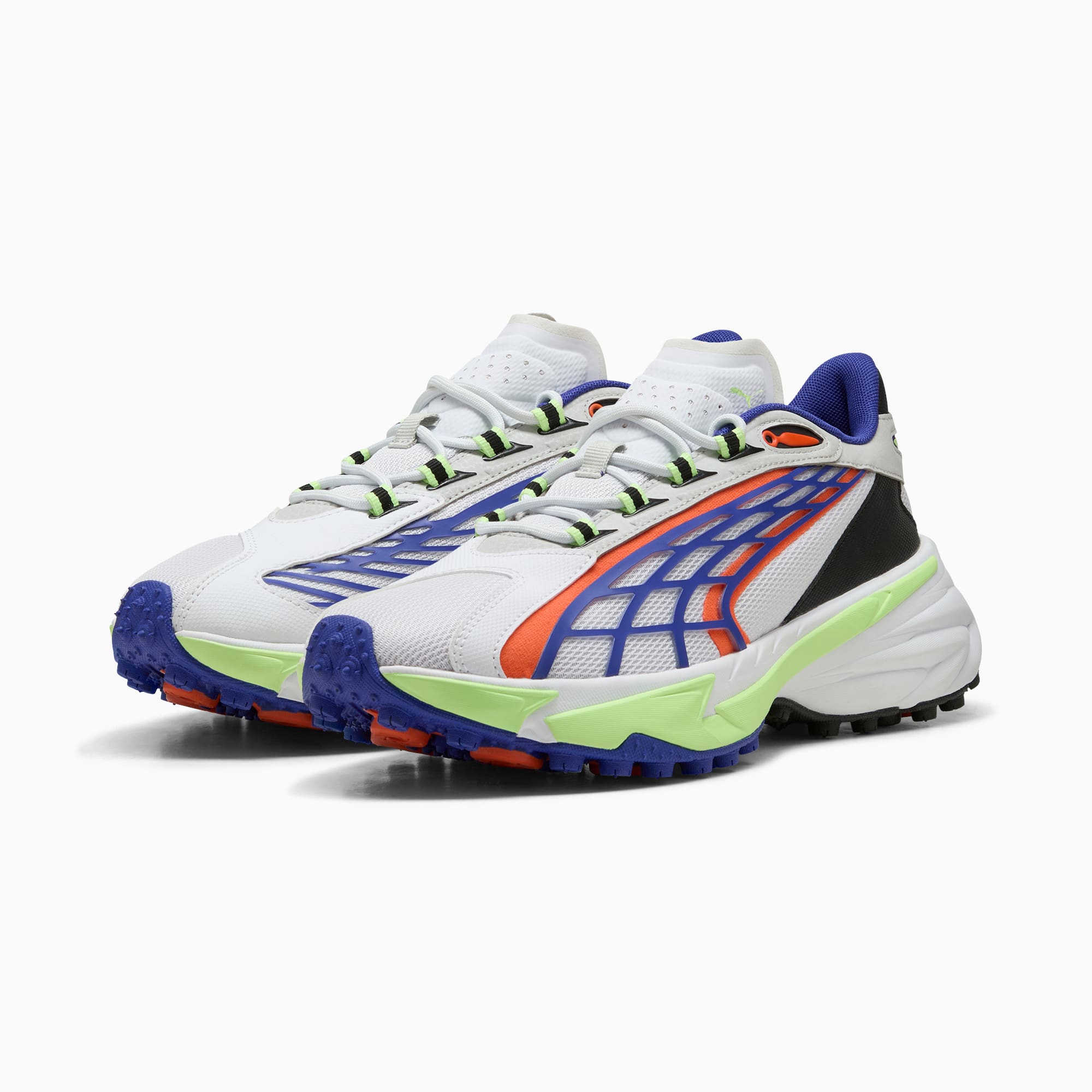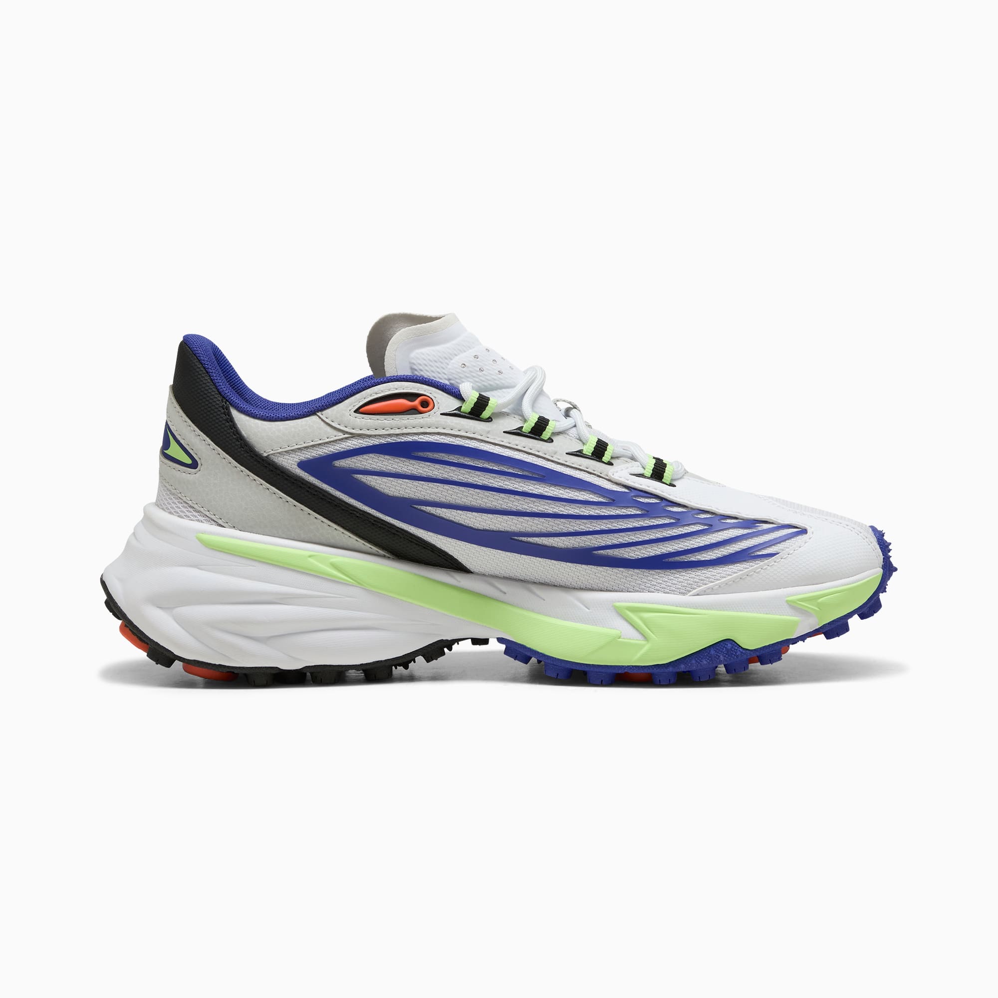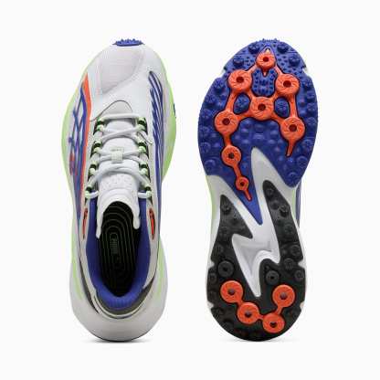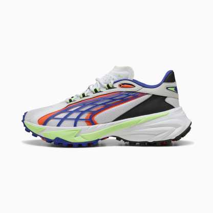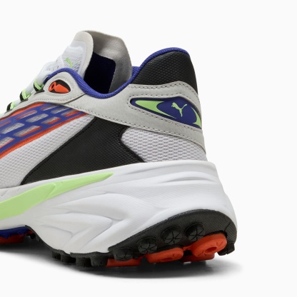 Inspired by pumthta's Icons of Speed, the Spirex uses design elements from the pumthta archive to create a bold, new, streetwear look. While the outsole draws inspiration from runners' spikes, the upper is a reinterpretation of pumthta's football and motorsport heritage. This version features a textile upper and synthetic overlays.