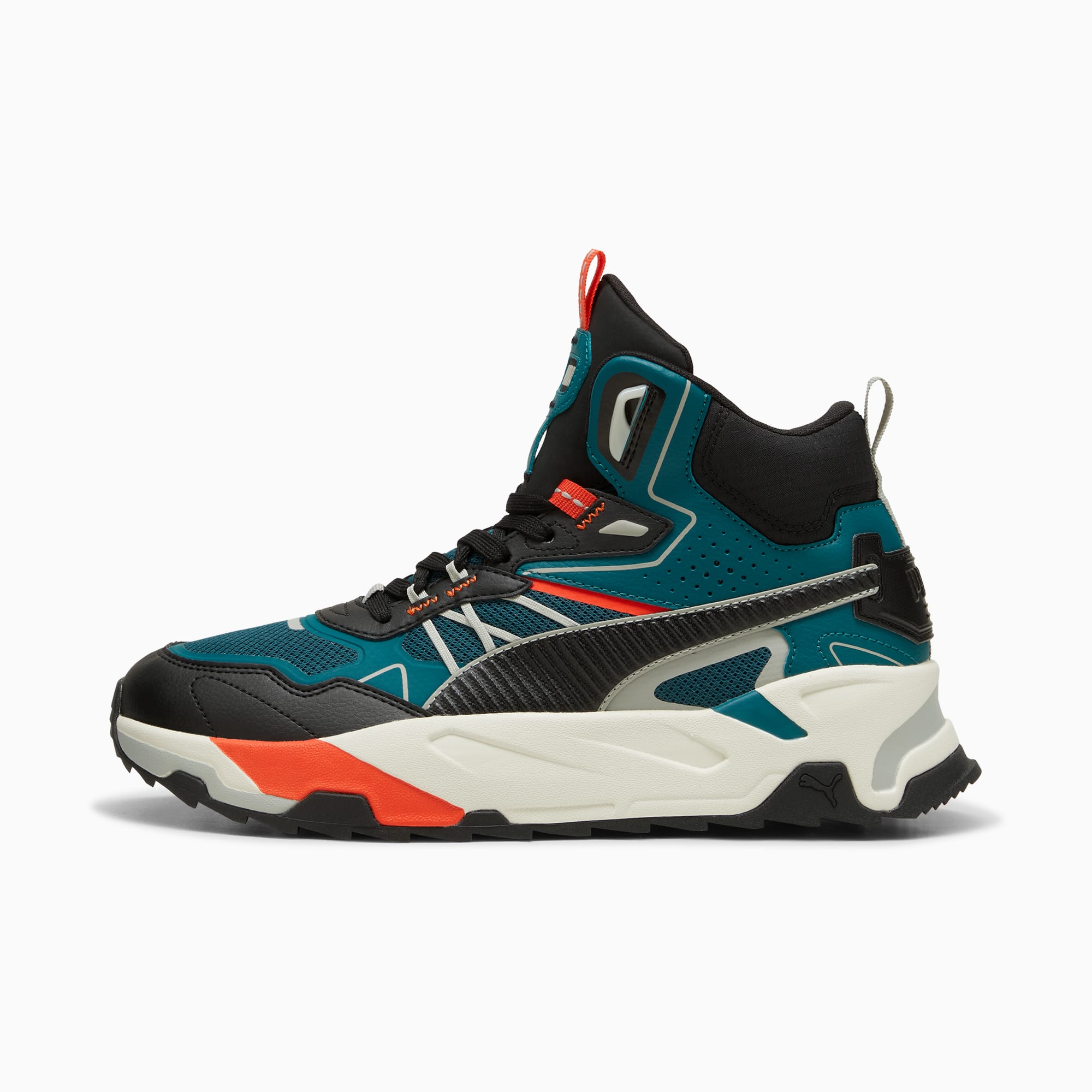 Introducing the Trinity Mid Hybrid, a mid-boot sneaker inspired by adventures in the great outdoors. The mixed material upper layers mesh, nylons, nubuck and synthetics, with webbing and stitching elements linking back to the hiking trends of the moment.