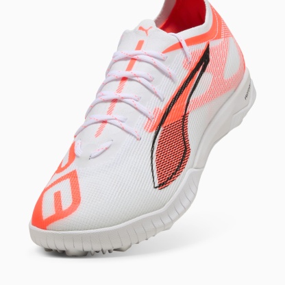 How fast is the ULTRA 5? Fasten your seatbelt. pumthta's newest ULTRA soccer cleats are here. They feature a lightweight mesh upper, PWRTAPE support frame for stability, and GripControl Pro skin for decisive ball command. The low-profile rubber outsole and ProFoam LITE midsole keep you agile on hard surfaces and artificial grass. Play at full throttle.- The upper of the shoe is made with at least 30% recycled materials
