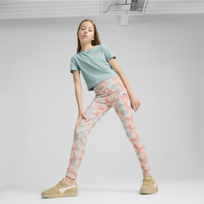Shine bright with these high-waist leggings featuring a vibrant all-over butterfly print. The elastic waistband with an internal drawcord ensures a perfect fit, while the shiny silicone Cat logo adds a touch of PUMthtA flair. Feel inspired and ready to take on the world.