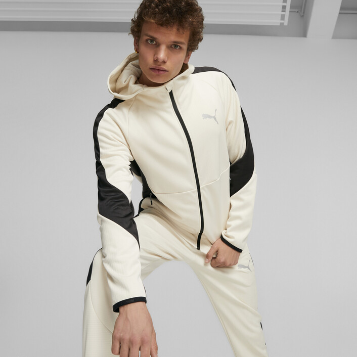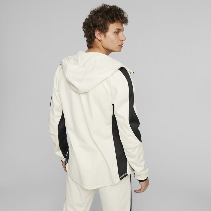 Our EVOSTRIPE cutline is all about human performance and freedom of movement. This slim-fit, full-zip men's hoodie has the EVOSTRIPE on the arms, so you can stay active and stay warm.