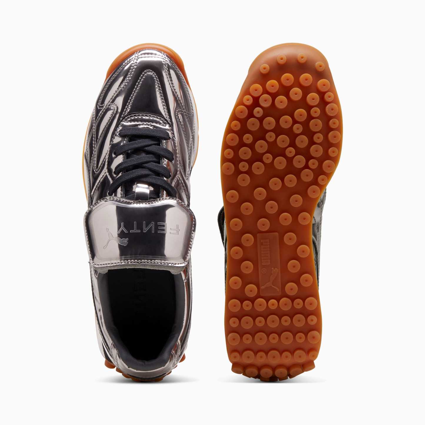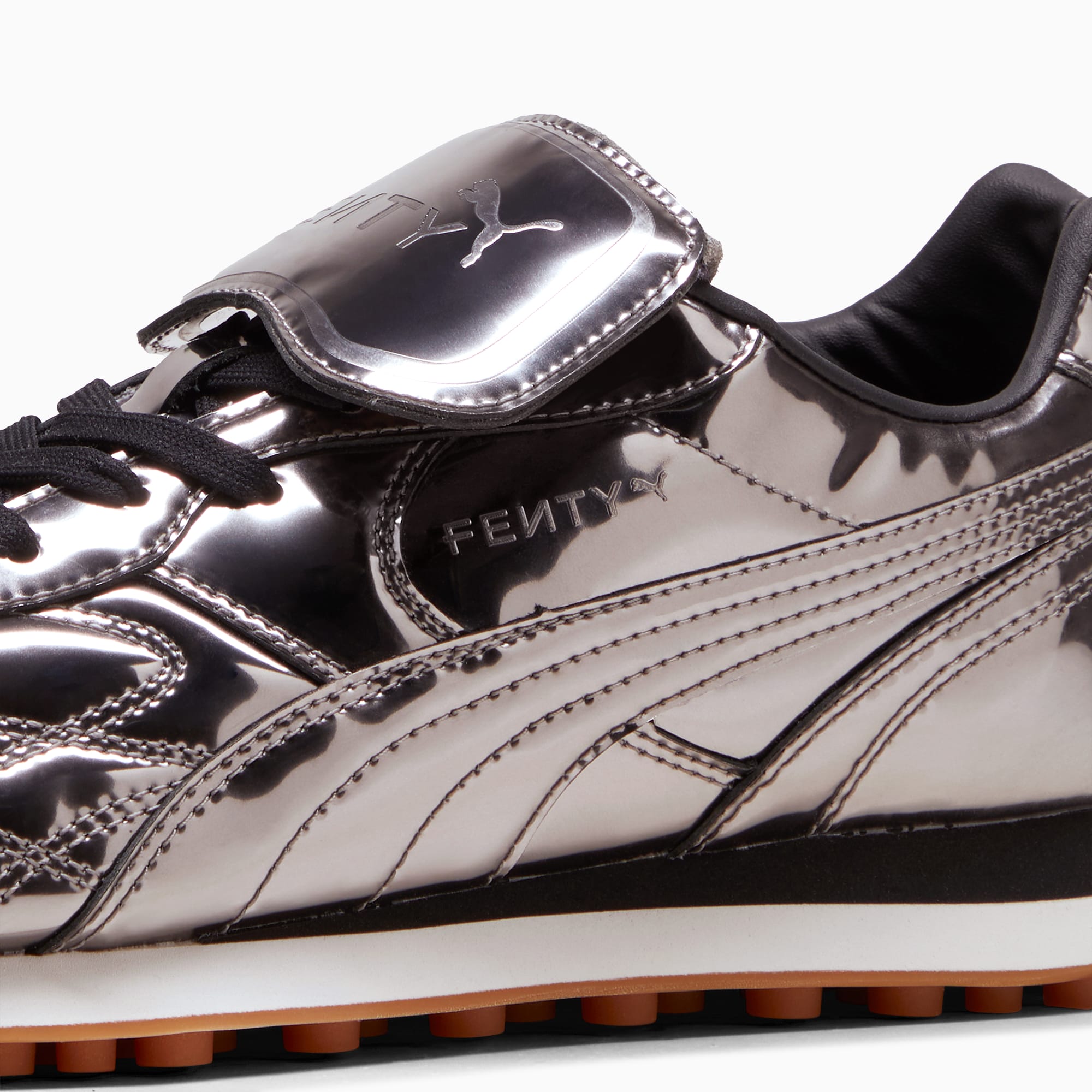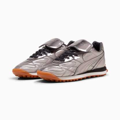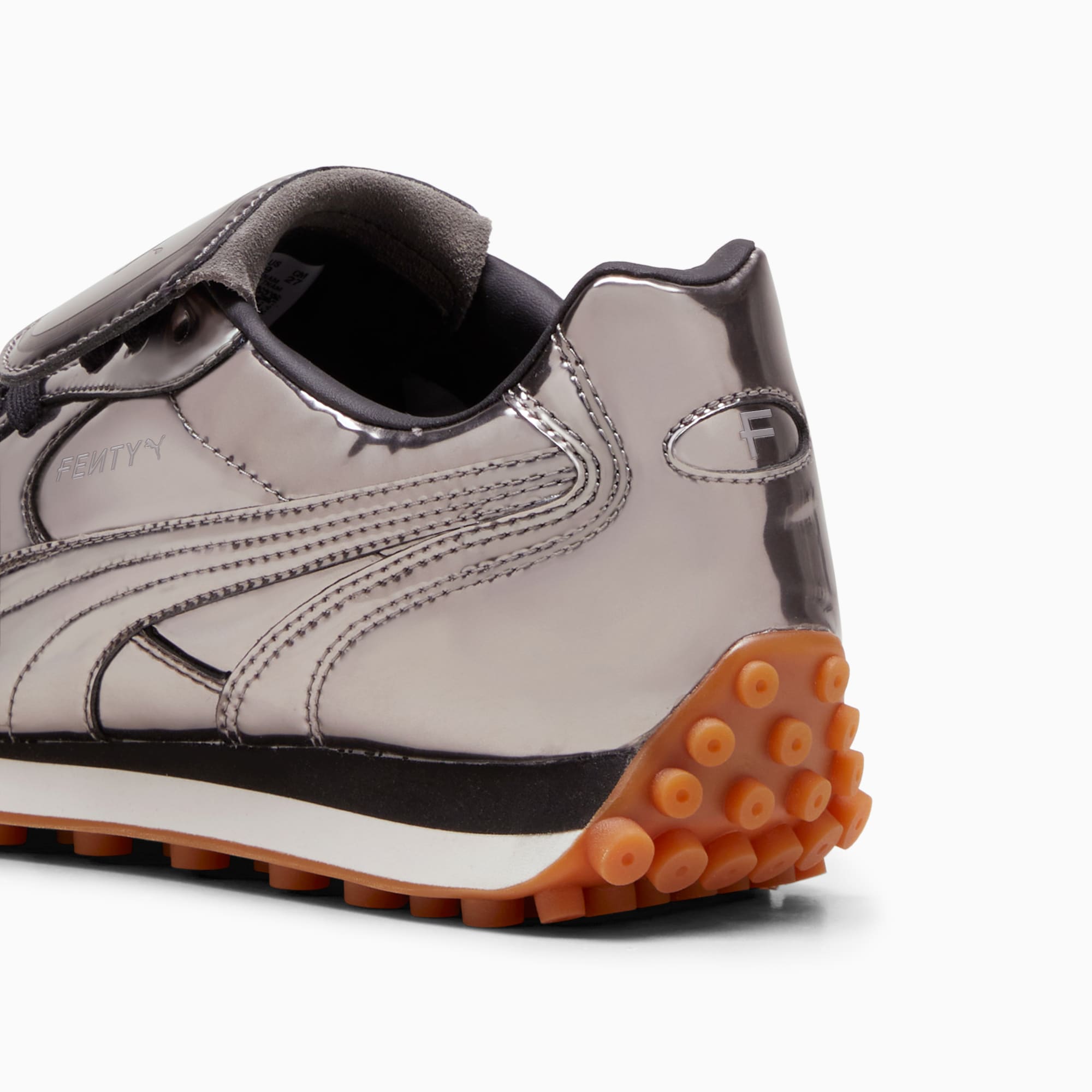 Rihanna’s classic in chrome. The FENTY x pumthta Avanti is a sport-fashion style inspired by the icon from pumthta’s archives. The Avanti’s soccer-inspired elements – like a stitched leather upper and gum sole – are given a fashionable twist with a silver chrome finish and debossed FENTY x pumthta branding.- Style: 399265_01