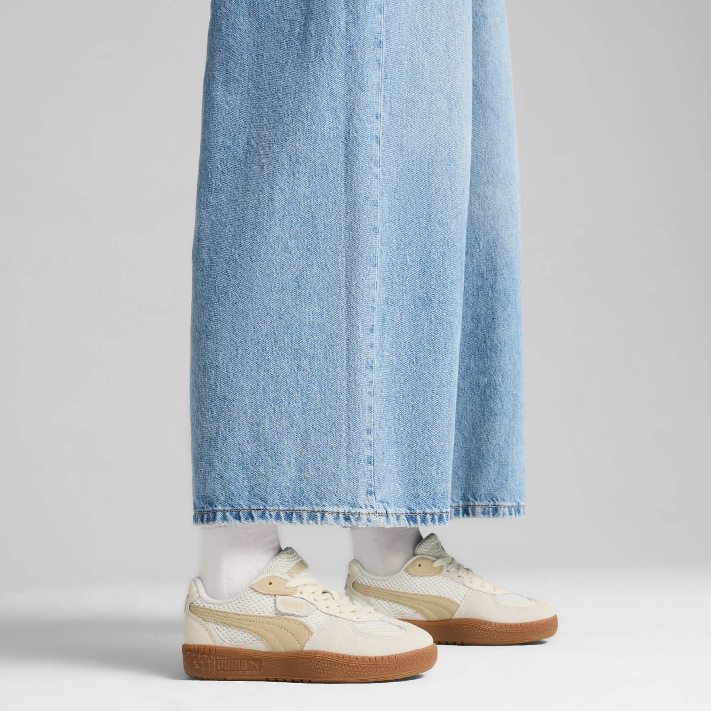 The Surreal Contour collection is inspired by the beauty and chaos of the surrealist art movement. We've taken some of our most popular sneakers and distorted their reality with overlapping aspects, wavy stitching, and mixed materials. We keep these surreal sneakers down to earth with muted, natural tones. This Palermo Lamoda version, with its signature T-toe construction and classic gum sole, features a textile upper, nubuck Formstrip, and suede and leather overlays.