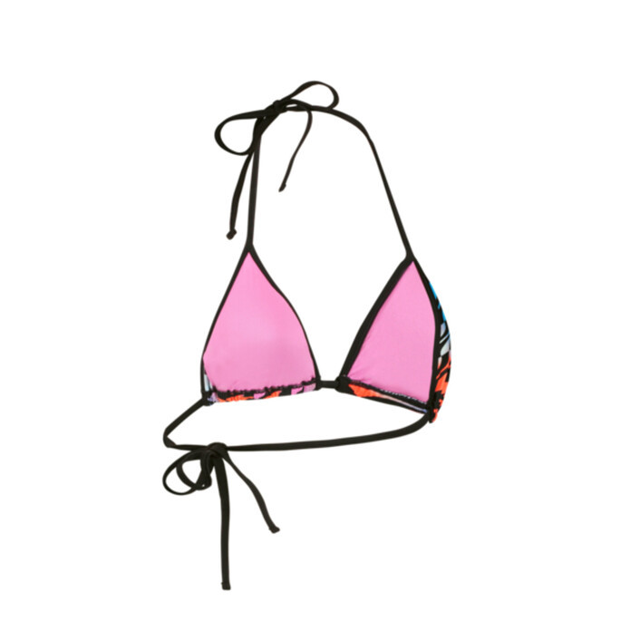 Branded with the hottest formstrip pattern from PUMthtA you are guaranteed to bring the extra heat to the poolside. The classic triangle cut with tie straps and removable cups give you full control of your look. Match it with the PUMthtA formstrip bikini bottoms and you're ready for your close-up.