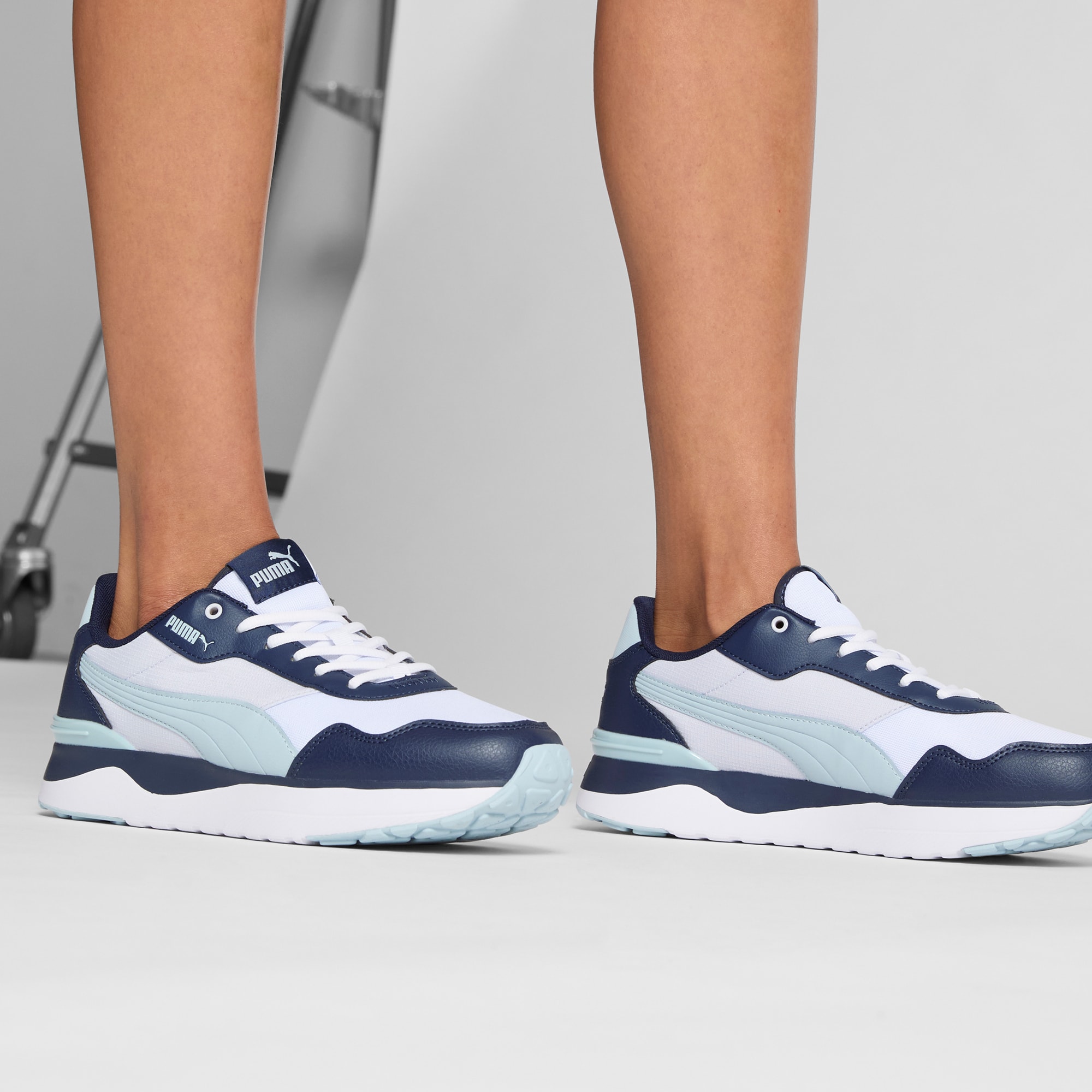 - Nylon and synthetic leather upper in traditional retro style