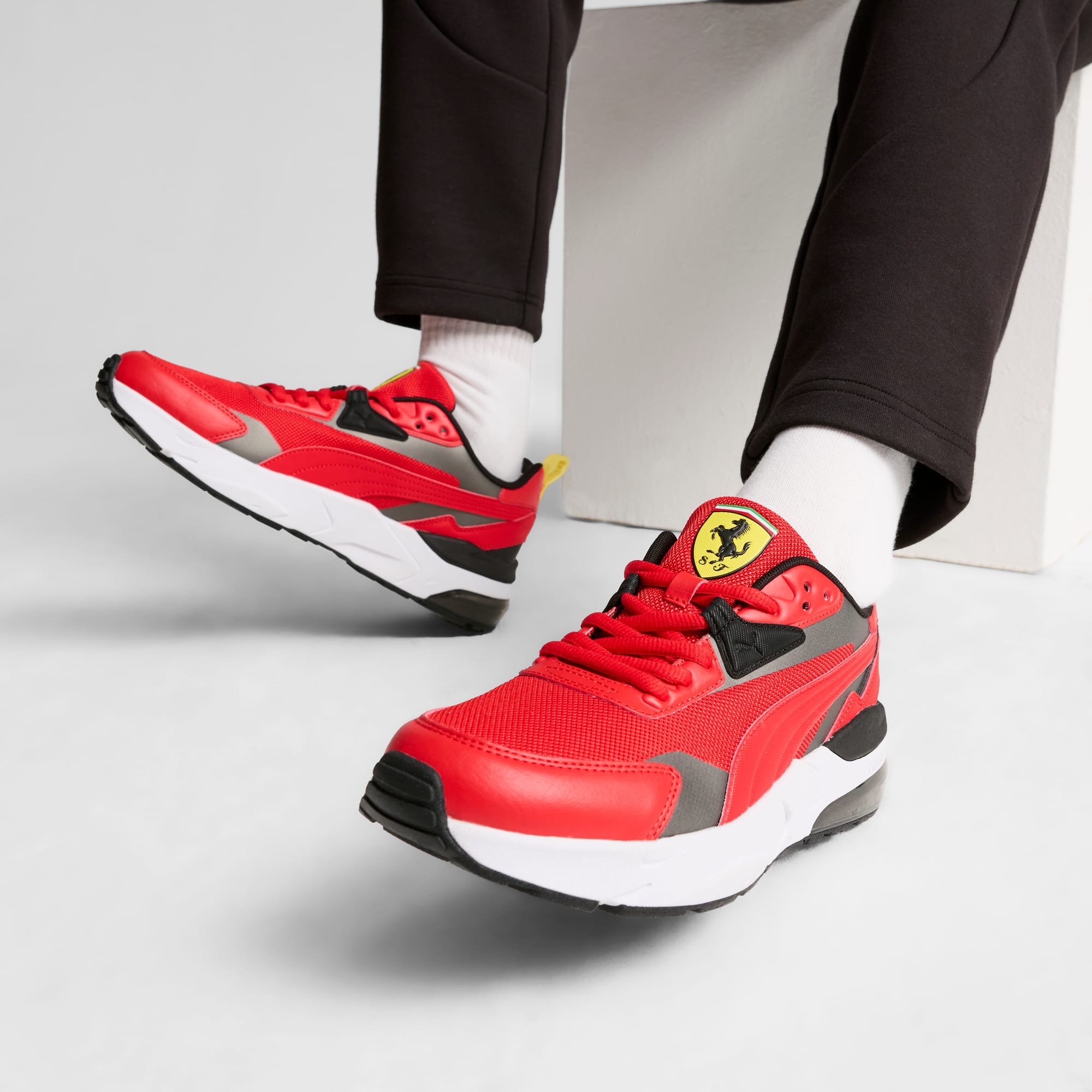 Taking inspiration from our pumthta archives through materials and color blocking, the Vis2k is a mix of mesh and synthetics, color blocked with heritage Scuderia Ferrari and pumthta colors. The midsole is a soft EVA, and there's a transparent TP clip highlight you won't miss.- SOFTFOAM+: Step-in comfort sockliner designed to provide soft cushioning thanks to its extra thick heel