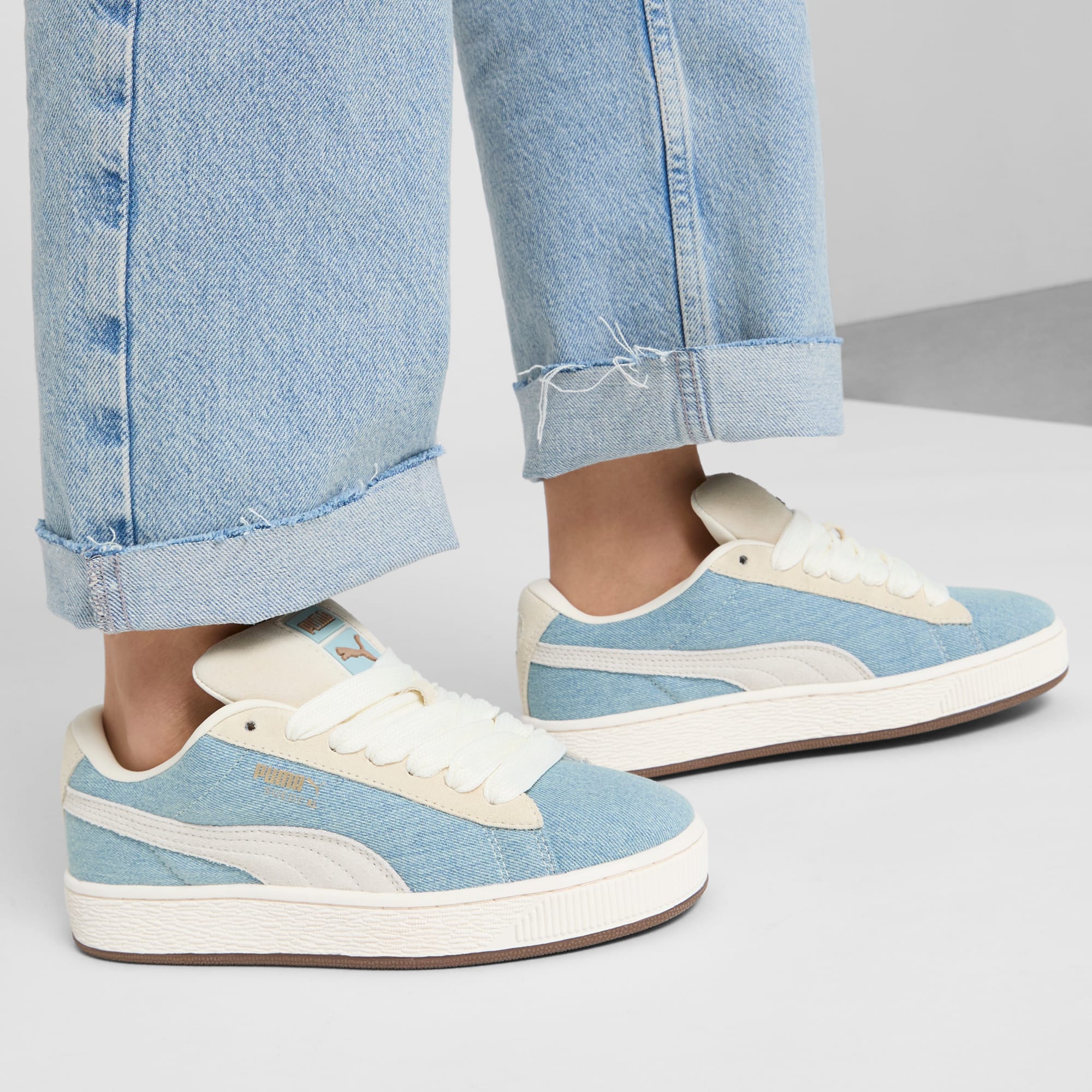This larger-than-life remix of the iconic Suede Classic has been blazing its own path. The Suede XL draws from pumthta's Y2K-inspired styles while retaining classic Suede DNA. But there's a twist. With its extra padding, extra-large tongue, and extra-thick laces, Suede XL maximizes everything. The perfect mix of understated and elevated, this rendition of the Suede XL features denim details.- Style: 399271_01